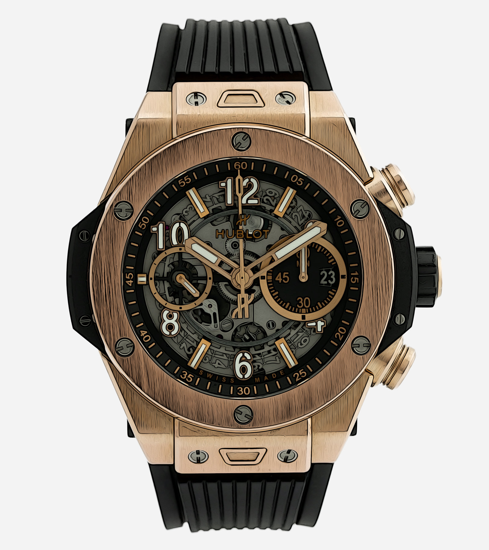 Luksusowe zegarki Hublot czerpią swoją inspirację z francuskiego. Samo słowo Hublot oznacza nic innego jak iluminator (okrągłe okno w kabinie statku), którego wygląd był zaczątkiem wzrostu legendy marki. Inspiracja bulajem widoczna jest już na pierwszy rzut oka. Zegarowa luneta otaczająca tarczę, mocowana jest do koperty przy pomocy 12 śrub wykonanych z tytanu. Nietypowy, surowy design pochodzący z lat 80 wieku XX. nieustannie cieszy się ogromnym zainteresowaniem, znajdując zegarkom marki Hublot, pomimo stosunkowo krótkiego czasu istnienia firmy, prestiżową pozycję wśród legendarnych producentów zegarków ze Szwajcarii. Minimalistyczny styl czasomierza Classic Fusion zmienił rozumienie luksusu w zegarmistrzowym słowniku. Wraz z powstaniem najbardziej ikonicznej kolekcji Hublot zmieniło się postrzeganie szwajcarskiego kunsztu. Ogromne zainteresowanie innowacyjną marką zaowocowało powstaniem hucznej kolekcji zegarków męskich, Big Bang. Nowatorski projekt łączył w sobie zestawienie wielu materiałów, w tym węgla, ceramiki, magnezu, gumy, złota, stali oraz wolframu i szafirowego szkiełka. Nie jest to przypadkowa kombinacja. Nazwa modelu pochodzi od Wielkiego Wybuchu, z którego powstał Wszechświat. Projekt był futurystycznym ukłonem w stronę historii i momentu, któremu zawdzięczamy wszystko. Big Bang niemal od razu zdobył zainteresowanie publiczności i wytrawnych koneserów sztuki zegarmistrzowskiej. Model Big Bang King Gold wygrał serię konkursów i festiwali, zapewniając marce niepodważalny status fenomenu w swojej klasie. Marka Hublot ceniona jest za zaskakujące wizjonerstwo i niespotykane dotąd podejście do materiałów oraz kruszców.