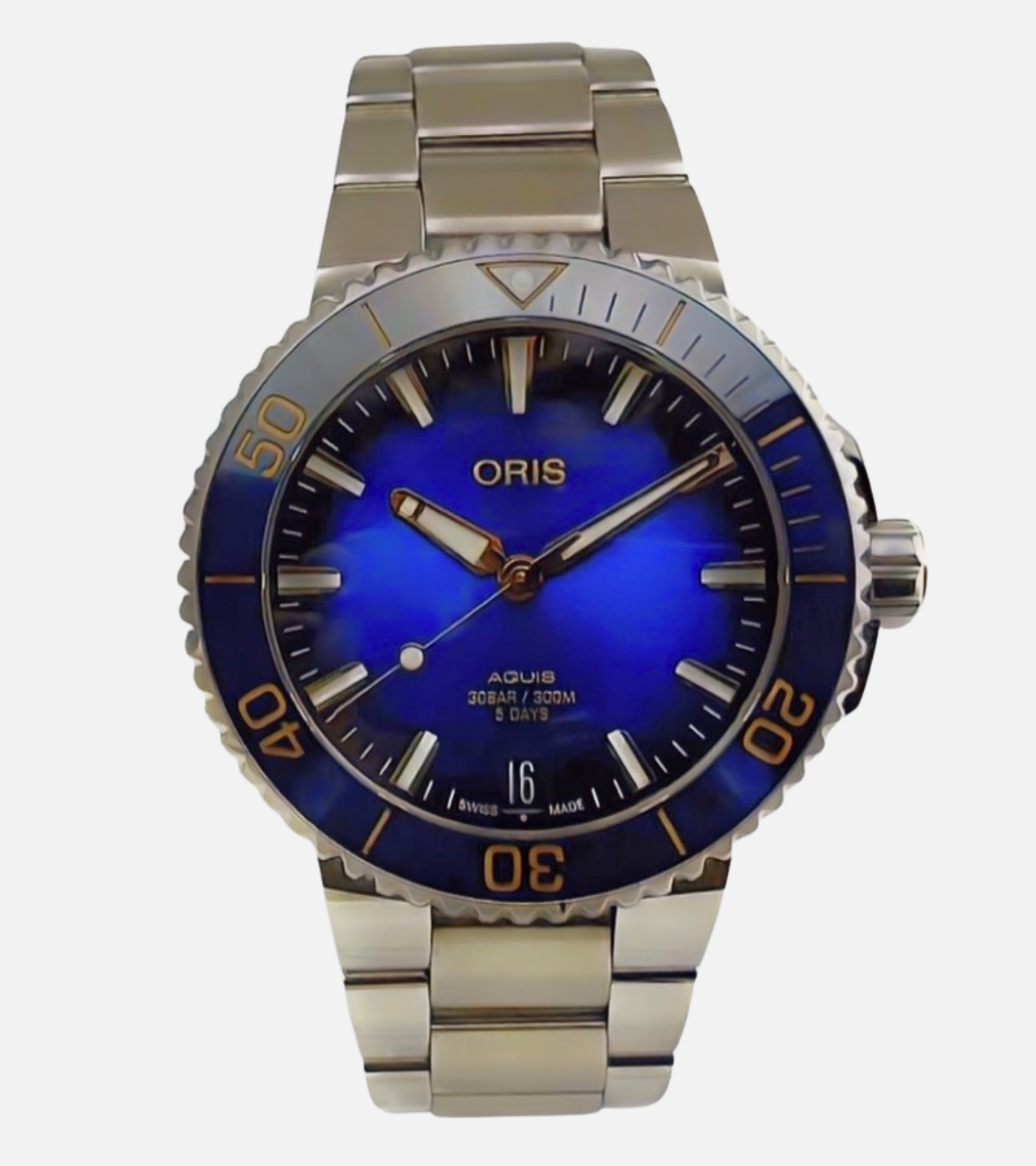 Produkcja zegarków mechanicznych Oris Aquis została zainspirowana rozwojem nurkowania w latach 60 XX wieku. Popularne wówczas wodoodporne i wodoszczelne zegarki towarzyszyły pływakom i nurkom podczas wodnych wypraw. Mając na uwadze potrzeby i wymagania klientów Oris stworzyło wyjątkowy jak na tamte czasy model. Kalibrowana jednokierunkowa luneta umożliwiała dokładne kontrolowanie czasu spędzonego pod powierzchnią wody, co umożliwiało nie tylko pomiar wyników, ale także ilości tlenu pozostałego w butli. Dzięki nowoczesnym funkcjom zegarki dla nurków szybko stały się jednymi z flagowych kolekcji marki Oris, dzięki czemu na stałe zagościły w firmowym portfolio. W 2011 roku zmodernizowana linia Diver ponownie zachwyciła fanów marki - Oris Divers wyposażone zostały w nowoczesne i specjalistyczne koronki i ramki, których obsługa możliwa była nawet głęboko pod wodą. Niezawodna funkcjonalność proponowanej kolekcji poskutkowała wprowadzeniem wysoce zaawansowanej i rozbudowanej na kategorie kolekcji Oris Aquis Depth Gauge z chronografem, Oris Aquis Date oraz zegarków męskich Oris Aquis Depth Meter. Wszystkie modele charakteryzowały się wyjątkową wytrzymałością i specjalnie skonstruowaną bransoletą, która świetnie dopasowywała się do nadgarstka. Sportowy design dobrze komponuje się zarówno z codziennym strojem, tym plażowym, jak i specjalistyczną pianką. Wersja Gauge została wyposażona w innowacyjny głębokościomierz, którego działanie było doskonałe i wyjątkowo odporne na negatywne działanie wysokiego ciśnienia. Dodatkowo na tyle koperty umieszczony został wykres konwersji metrów na stopy, dzięki czemu zegarek może być użytkowany przez nurków z całego świata. Firma Oris wprowadziła także ciekawe ułatwienie, jakim jest samodzielna wymiana paska - właściciel może zarówno zmienić metalową bransoletę na gumowy pasek, jak i odwrotnie.