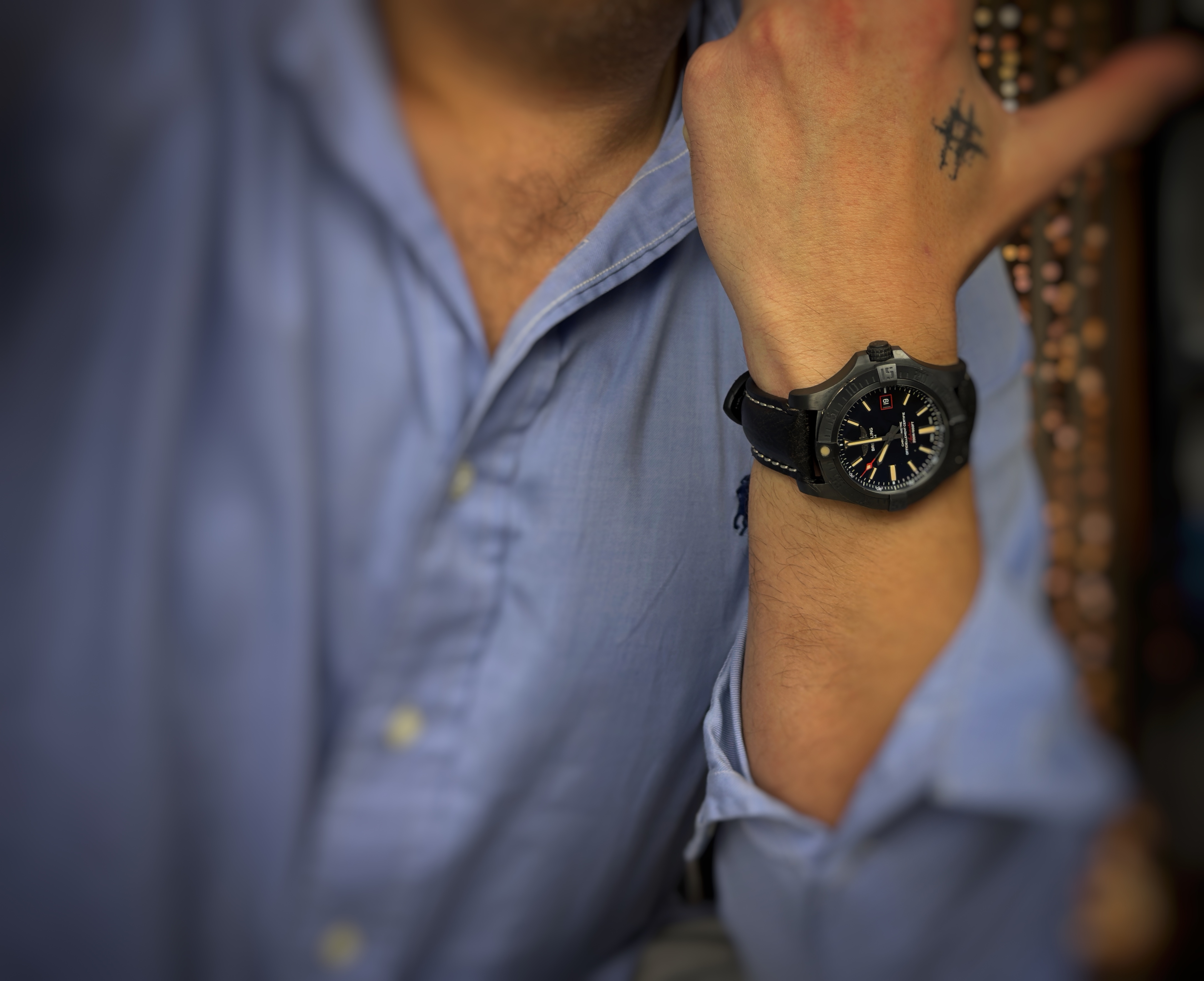 Oryginalny używany zegarek, stan zegarka bardzo dobry, delikatne rysy. Breitling Avenger Blackbird to bezkompromisowy zegarek narzędziowy o militarnym rodowodzie, zaprojektowany z myślą o maksymalnej wytrzymałości, czytelności i funkcjonalności. Model ten wyróżnia się kopertą z czarnego tytanu, nadającą mu surowy, taktyczny charakter i wyjątkową lekkość. Producent określił wodoszczelność do 300 metrów.