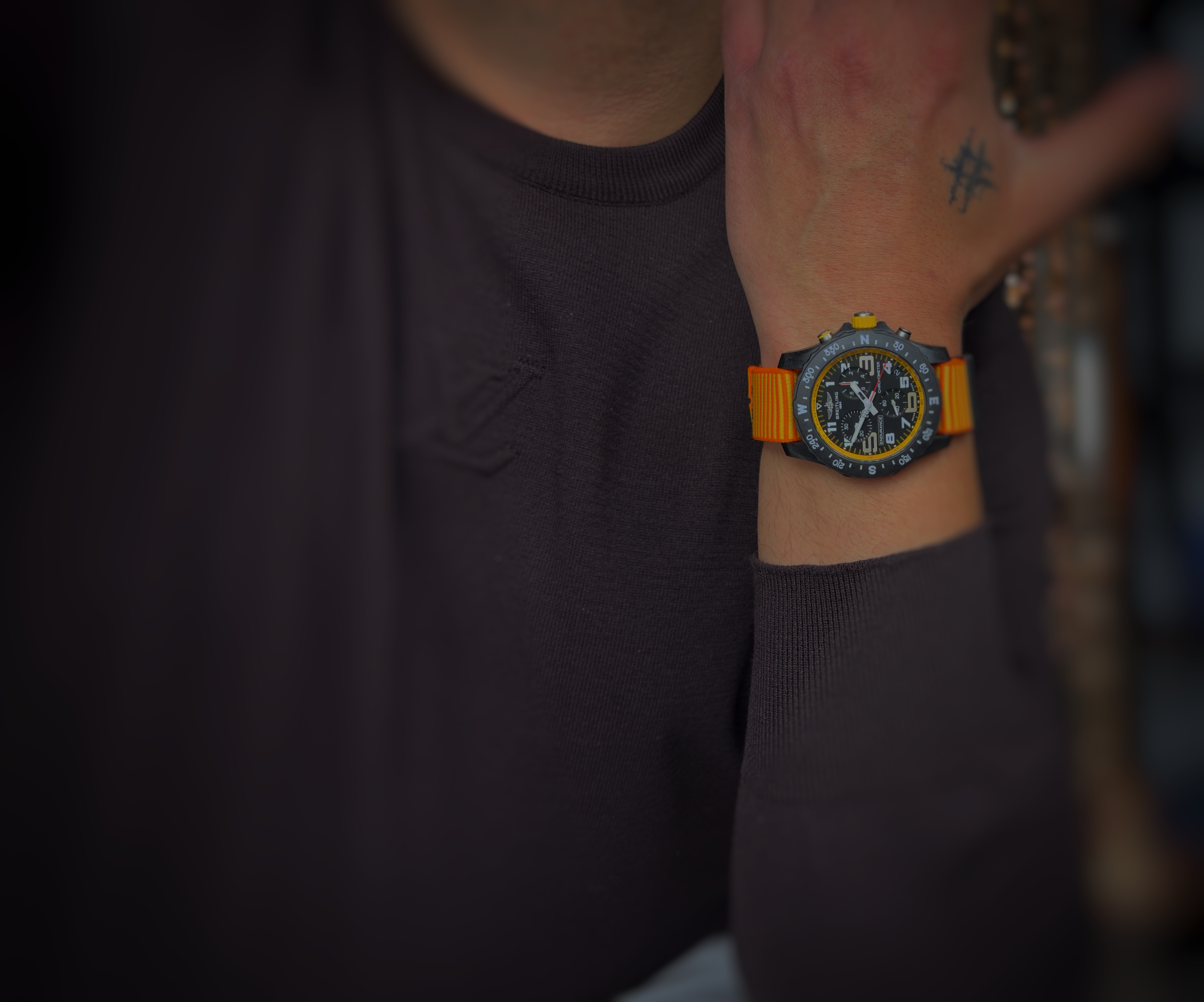 Oryginalny używany zegarek – jednakże stan jak nowy, brak śladów noszenia! Duża wyrazista koperta wykonana z opatentowanego materiału polimerowego „Breitlight” – Breitlight® jest zastrzeżonym znakiem towarowym firmy Breitling, który według producenta jest 3,3 razy lżejszy od tytanu i 5,8 razy lżejszy od stali, a jednocześnie znacznie twardszy. Firma twierdzi również, że ma „wyjątkową odporność na zarysowania, przyczepność i korozję; właściwości antymagnetyczne, antyalergiczne; a także cieplejszy od metalu „dotyk” i lekko cętkowany efekt podkreślający jego oryginalność.