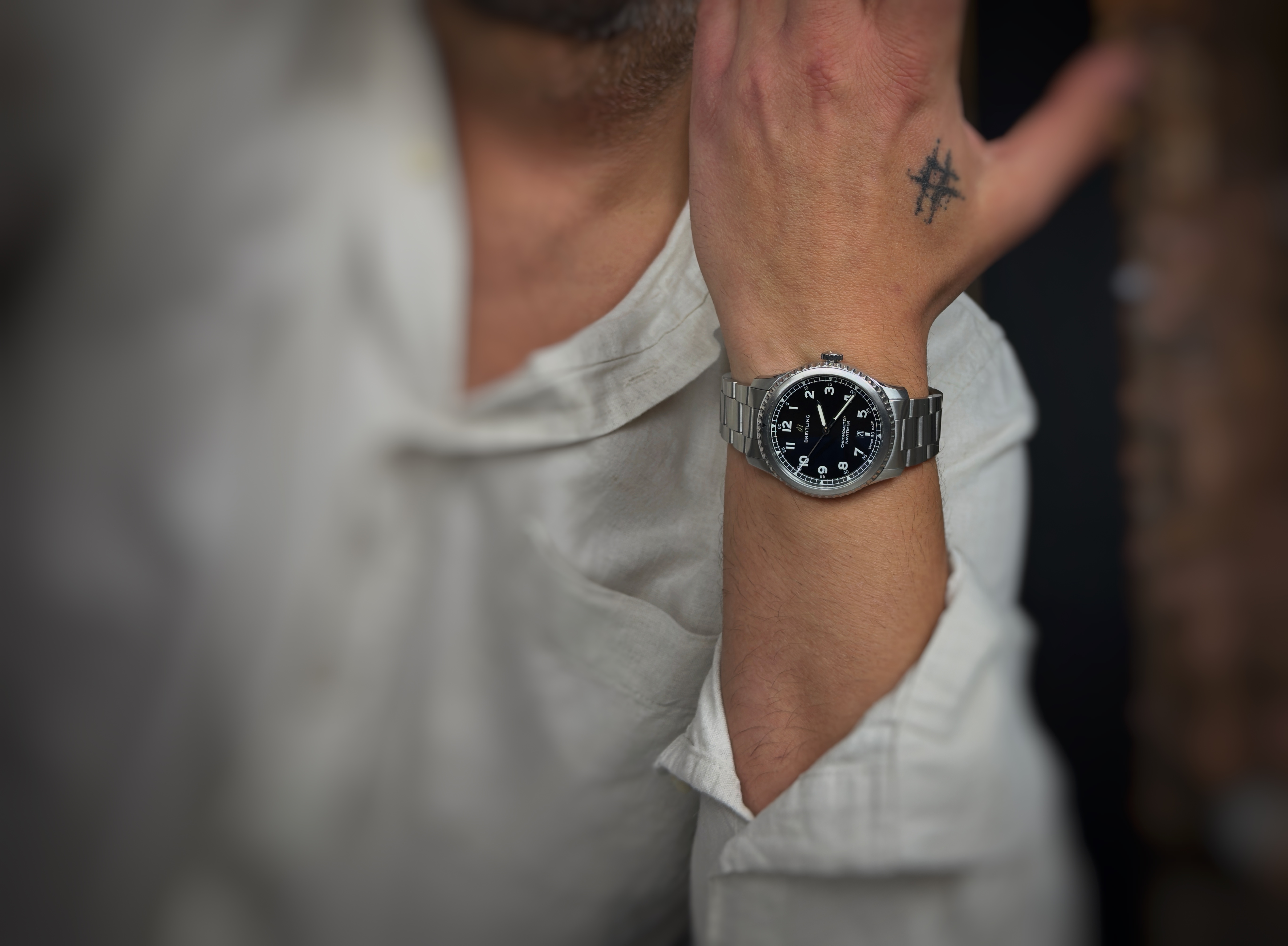Oryginalny używany zegarek, stan bardzo dobry. Breitling Navitimer 8 Automatic to model inspirowany klasycznymi zegarkami lotniczymi marki z lat 30. XX wieku, kiedy Breitling tworzył instrumenty pokładowe dla lotnictwa. Kolekcja Navitimer 8 stanowi nowoczesną interpretację tych historycznych projektów, łącząc czytelność, funkcjonalność oraz elegancki, minimalistyczny design. Prezentowany egzemplarz wyróżnia się głęboką czarną tarczą, która w połączeniu ze stalową kopertą oraz kontrastowymi indeksami zapewnia doskonałą czytelność i elegancki wygląd. Dzięki uniwersalnej średnicy 41 mm model doskonale sprawdza się zarówno w stylu sportowym, jak i bardziej formalnym.