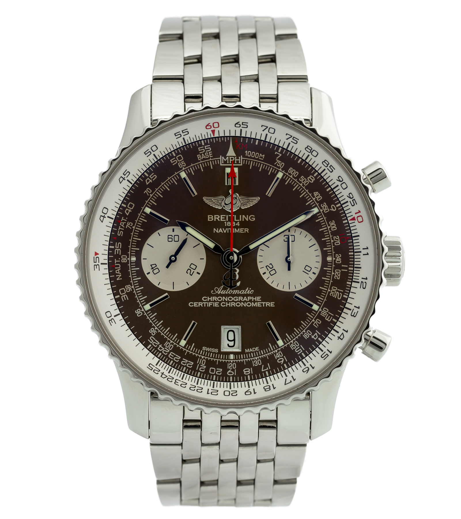 Oryginalny używany w bardzo dobry stanie – niemal jak nowy! Z serii Navitimer, klasyk w najnowszym wydaniu. Model znany na całym świecie! Linia zegarków Navitimer wodoodporność posiada do 30 metrów. Na jego komplikacje składa się chronograf oraz data. Numer referencyjny AB012612 W zestawie pełen komplet, pudełko i dokumenty. Pierwsza sprzedaż w 2015 roku.