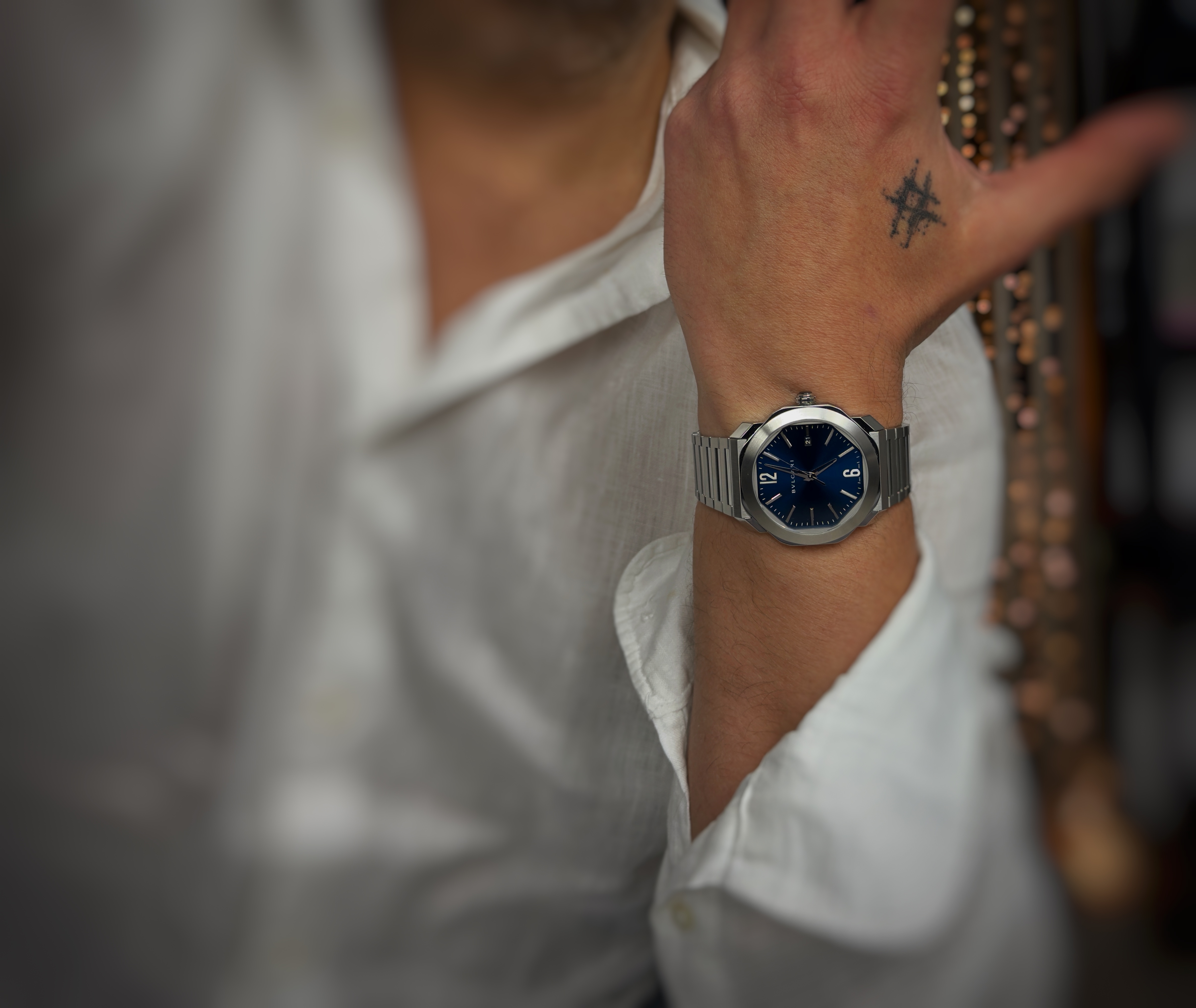 Octo łączy w sobie unikalny ośmiokątny projekt – zainspirowany rzymską bazyliką Massentiusa z 310 r. n.e. – z wyjątkowymi mechanizmami. Przesuwając granice wykonalności zegarmistrzowskiej w poszanowaniu dążenia do perfekcyjnego piękna, Octo Finissimo Automatic wyznacza nowy kamień milowy w świecie zegarmistrzowskich komplikacji. Ten wyjątkowy zegarek ma całkowitą grubość zaledwie 5,15 mm, a jego mechanizm ma grubość zaledwie 2,23 mm.