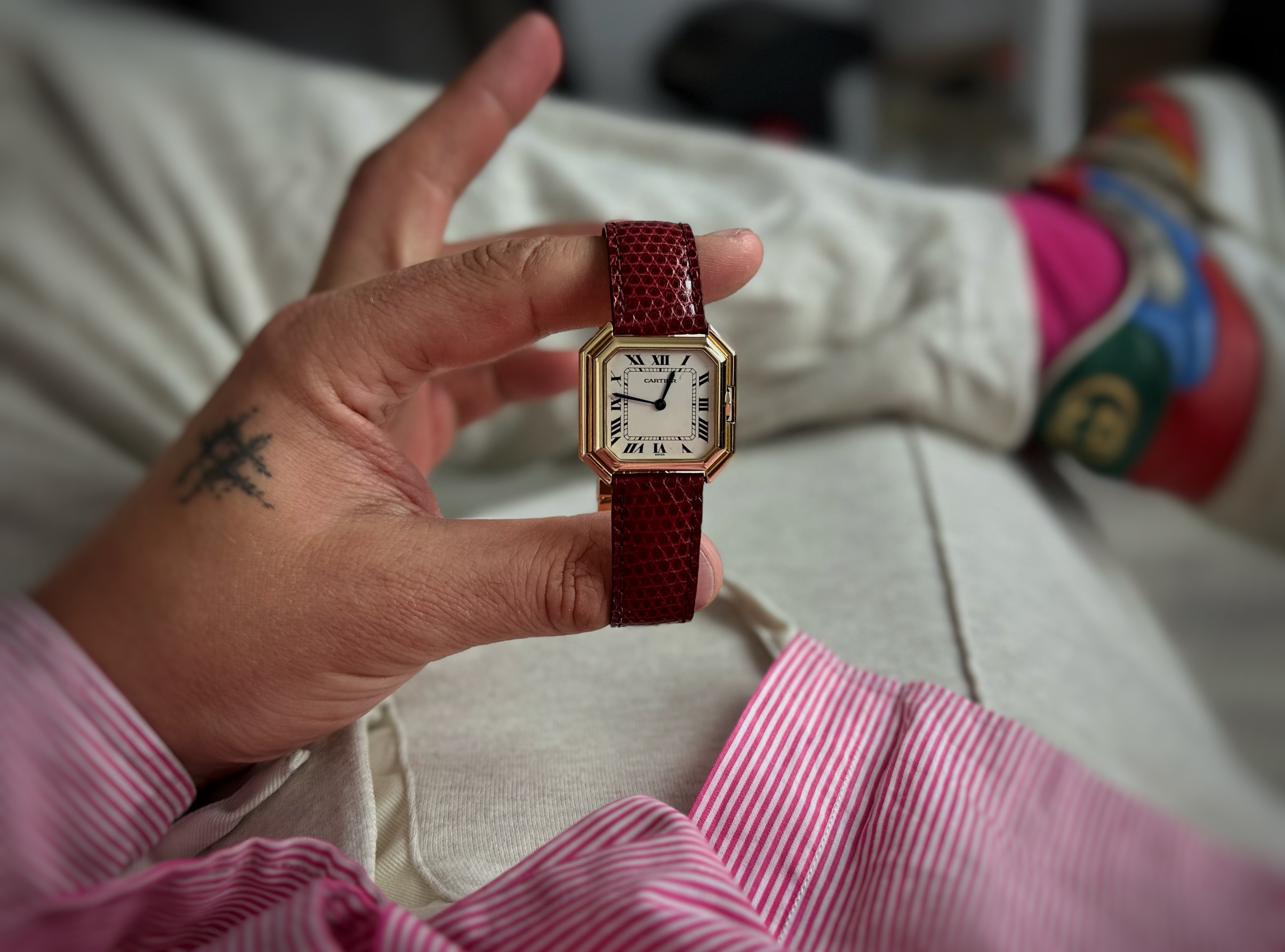 Oryginalny damski zegarek używany, należący do luksusowej grupy. Zegarki marki Cartier stanowią część wspaniałej biżuterii. Zegarek o niepowtarzalnym wyglądzie, wykonany ze żółtego złota. Model bardzo unikatowy, kilka ofert na całym świecie. Tył koperty ma klasyczny „bubble” Automatique, oryginalne grawerunki fabryczne. Numer referencyjny 17o01 W komplecie otrzymujesz oryginalne pudełko firmy Cartier (podróżne firmy Cartier) Pierwsza sprzedaż okolice 1970 roku. Wodoszczelność producent określił do 30 metrów.