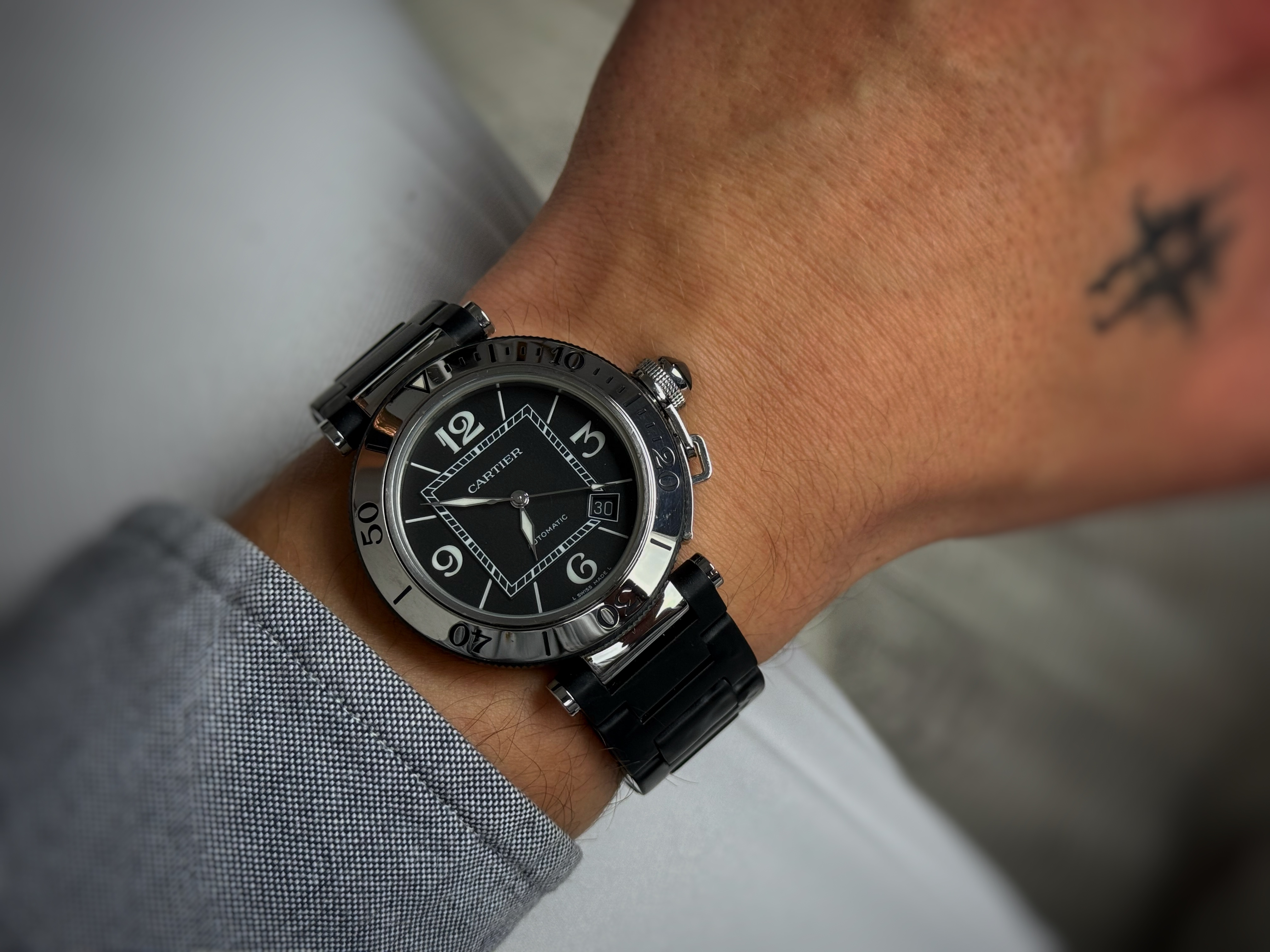 Oryginalny zegarek używany – stan bardzo dobry, należący do luksusowej grupy. Zegarki marki Cartier stanowią część wspaniałej biżuterii. Zegarek o niepowtarzalnym wyglądzie, wykonany ze stali szlachetnej w połączeniu z bransoletą w gumowym oplocie. Jego numer referencyjny W31077U2 Wodoszczelność określona do 100 metrów. W komplecie otrzymujesz oryginalne pudełko firmy Cartier Pierwsza sprzedaż w 2009 roku.