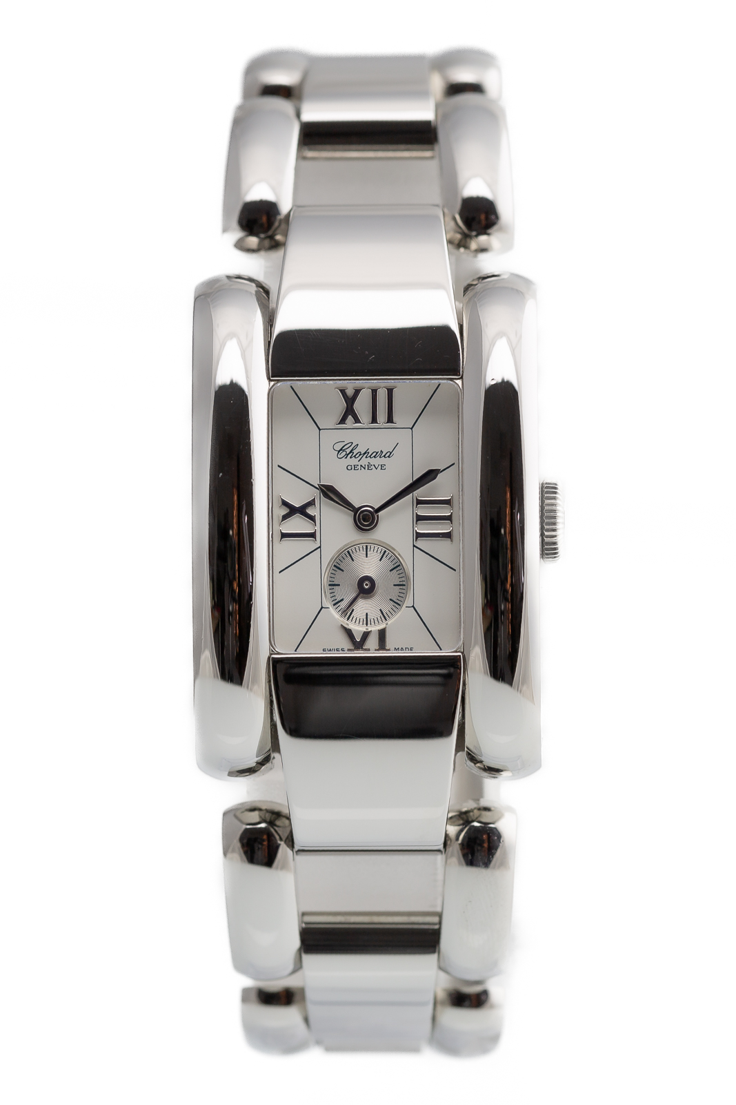Koperty o wymiarach 24 mm x 35 mm (z koronką 26 mm) wysokość 8 mm. Koperta wykonana jest ze stali w całości wykończona na połysk. Tarcza w kolorze z indeksami oraz cyframi rzymskimi – sygnowana nazwą marki Chopard. Szkło szafirowe.