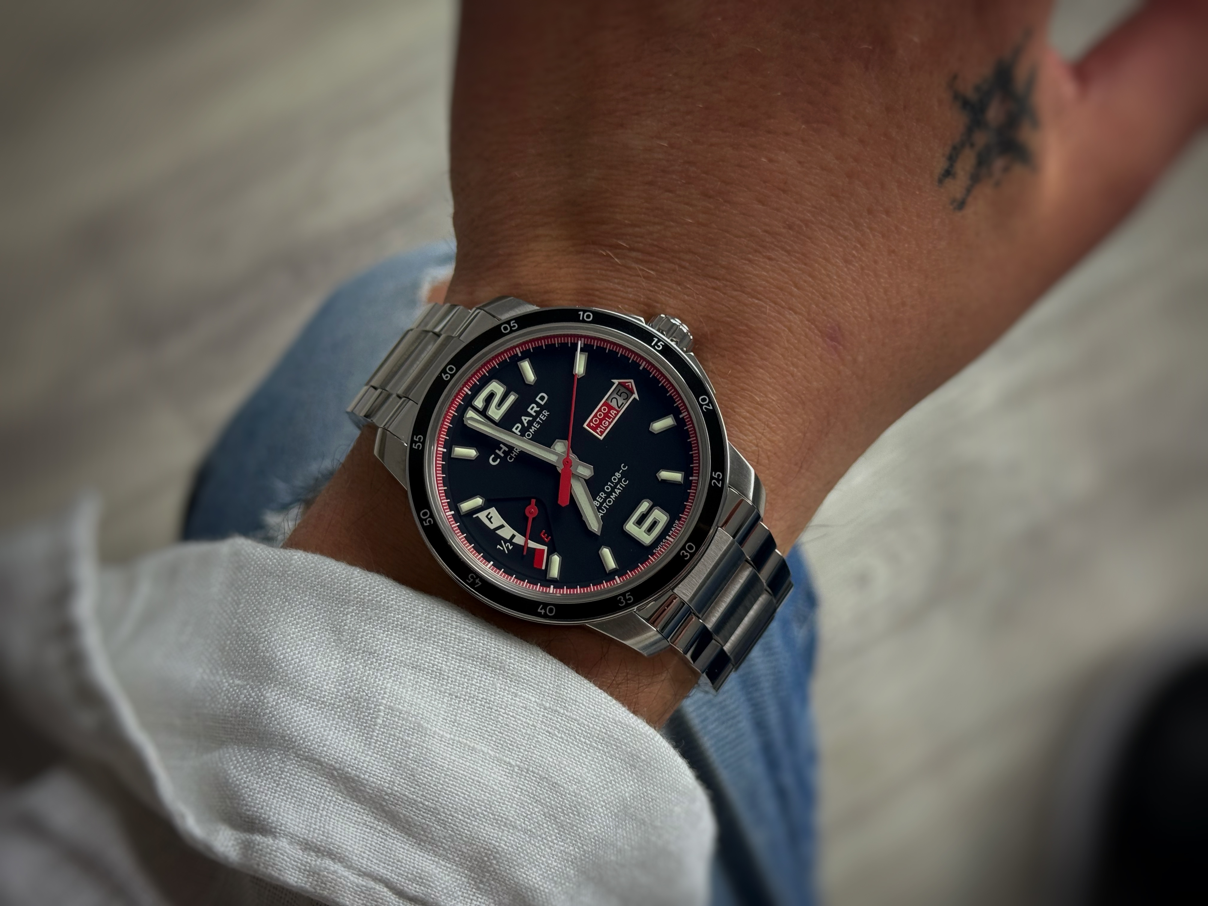 Oryginalny zegarek używany w bardzo dobrym stanie o sportowej stylistyce, zachowując wysoki luksus i prestiż marki Chopard. Wykonany jest ze stali szlachetnej. Numer referencyjny 158566-3001