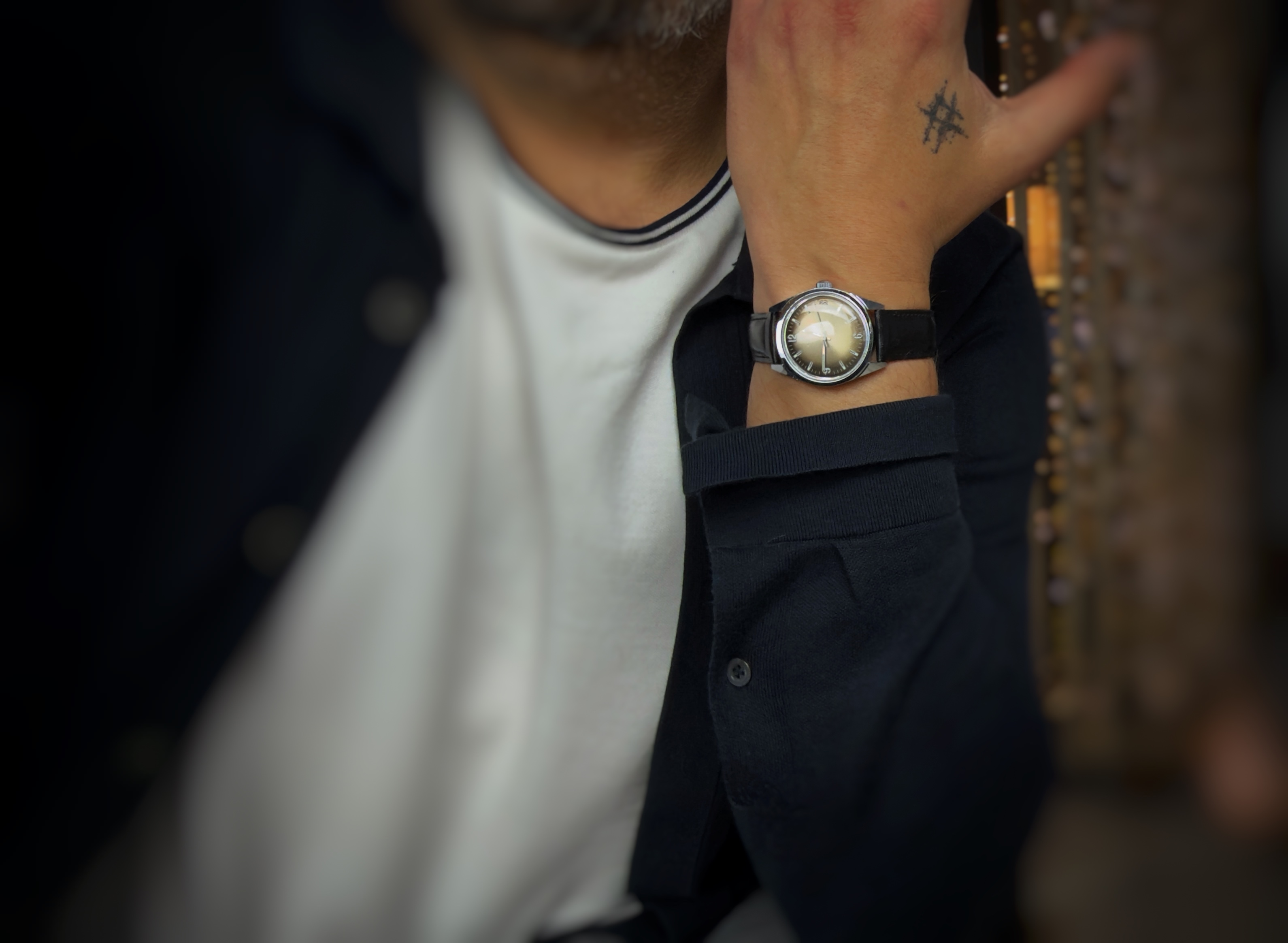 Średnica koperty wynosi 34 mm (36 mm  z koronką), 42 mm ‘lug to lug’, wysokość 8 mm. Koperta wykonana została ze stali szlachetnej. Smukły profil oraz klasyczne, cienkie uszy zapewniają elegancki wygląd i komfort noszenia. Tarcza utrzymana w stylistyce vintage – brązowa – tropical dial, z delikatnymi indeksami liniowymi  oraz smukłymi wskazówkami. Całość przykryta jest szkłem akrylowym, typowym dla zegarków z lat 70., które dodaje ciepłego, lekko zniekształconego efektu wizualnego.