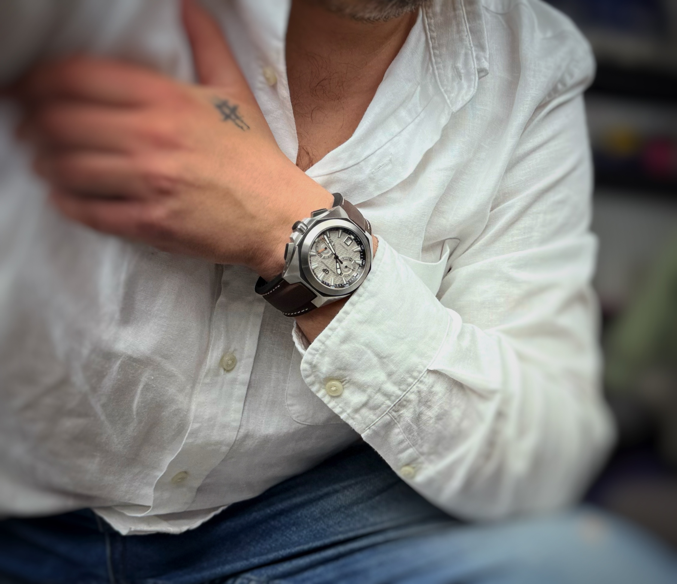 Oryginalny, używany zegarek Girard Perregaux – stan jak nowy, brak śladów noszenia. Oferowany model posiada oryginalne pudełko oraz komplet dokumentów, pierwsza sprzedaż w 2021 roku. Na jego komplikacje składa się datownik oraz chronograf. Numer referencyjny 49970-11-131-HDBA Wodoszczelność określona przez producenta 100 metrów.