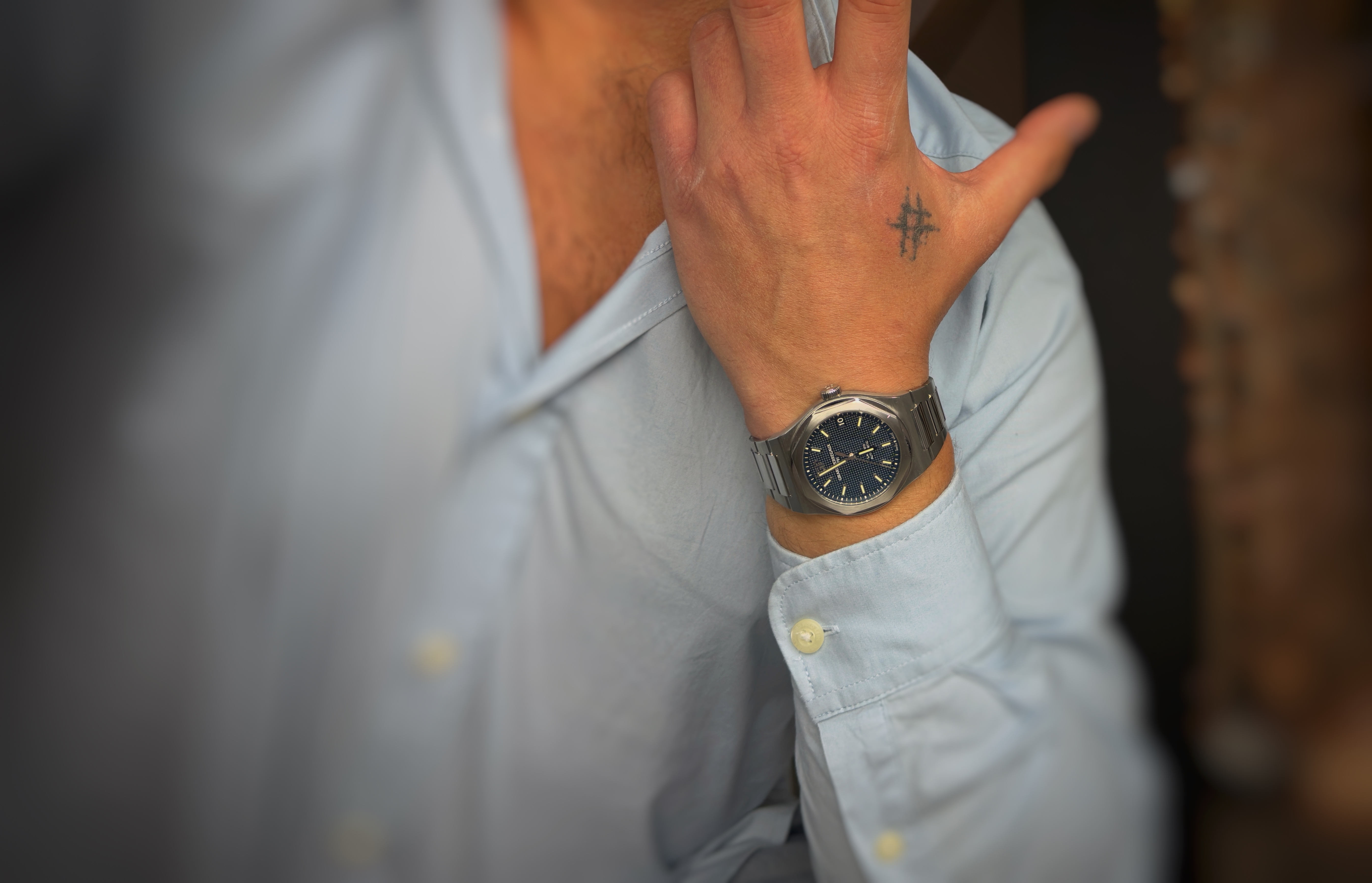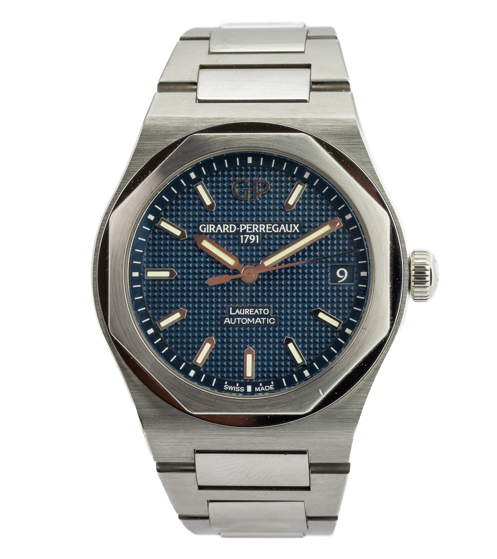 Oryginalny, używany męski zegarek – stan bardzo dobry. Girard‑Perregaux Laureato to kultowa kolekcja, która od 1975 r. łączy sportową elegancję z najwyższą klasą wykonania, w stalowej kopercie z głęboką niebieską tarczą to doskonały przykład tej filozofii — zegarek, który wygląda znakomicie zarówno do garnituru, jak i w codziennym zestawie.