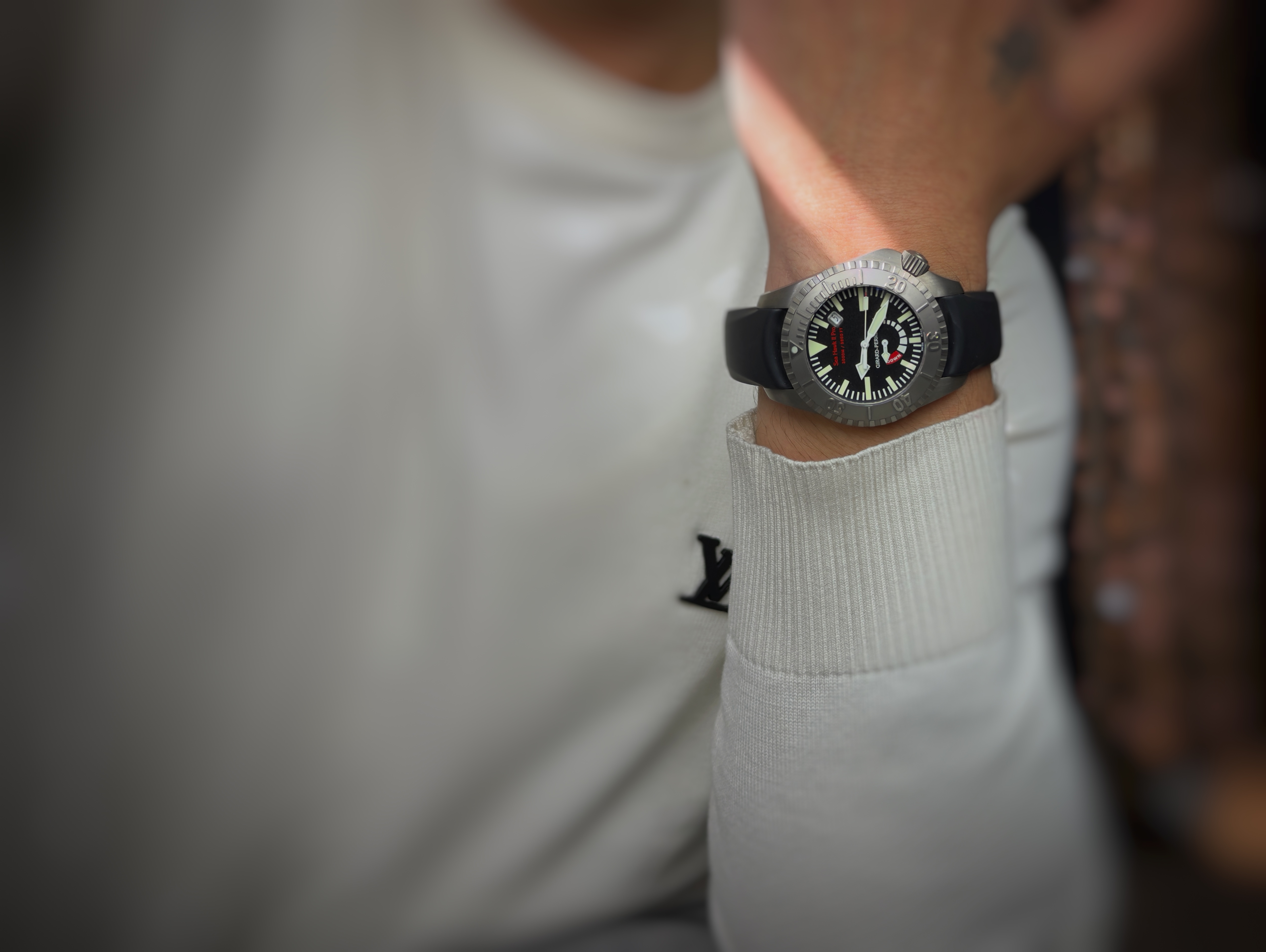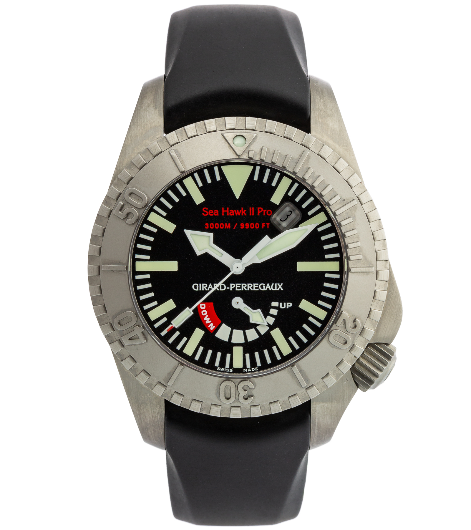 Oferowany egzemplarz to oryginalny, używany zegarek marki Girard-Perregaux z profesjonalnej linii Sea Hawk, zachowany w bardzo dobrym stanie. Model Sea Hawk II Pro to ekstremalny zegarek nurkowy, zaprojektowany z myślą o pracy w najbardziej wymagających warunkach – zarówno pod względem wytrzymałości, jak i funkcjonalności.