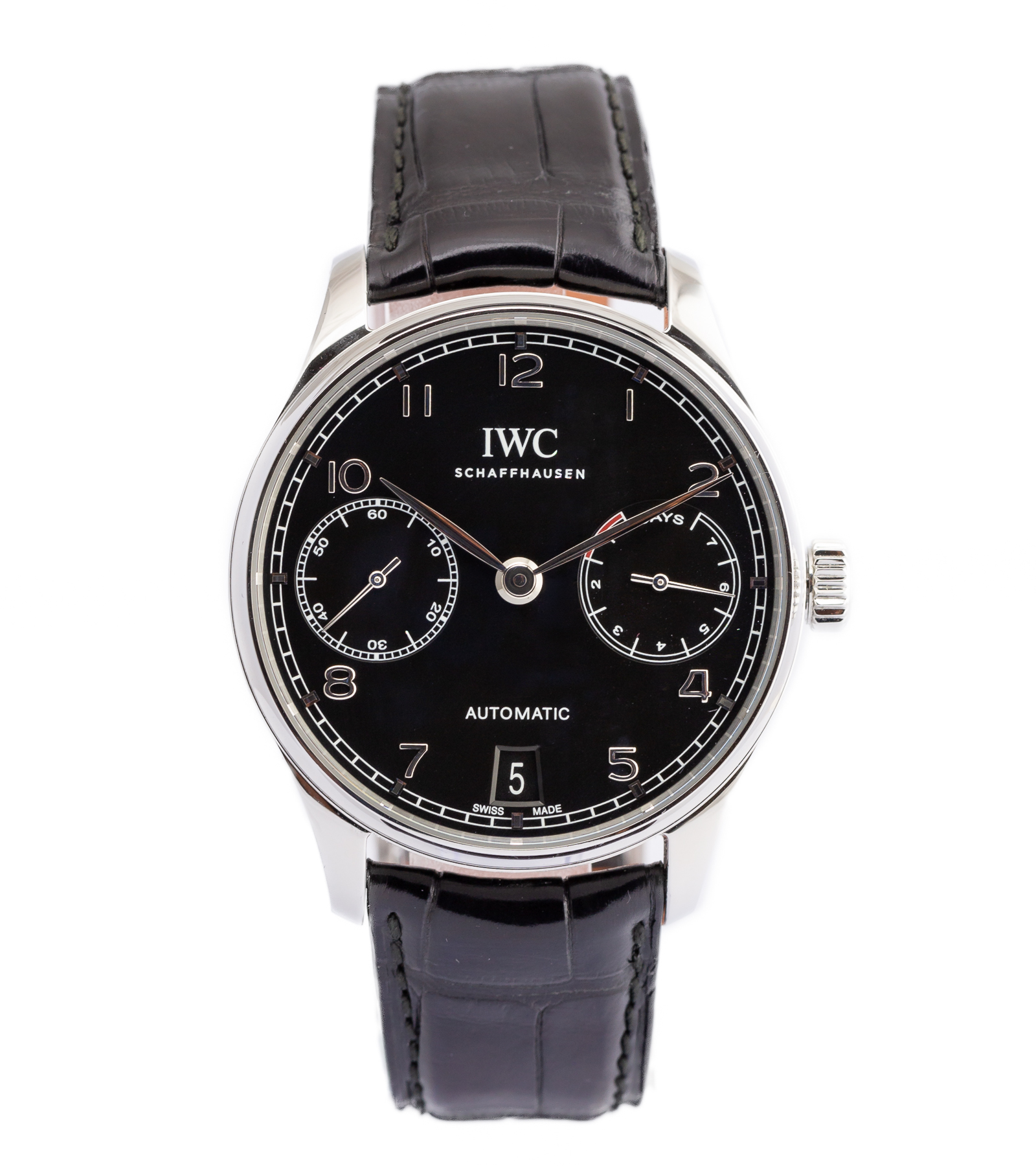 Oryginalny zegarek używany, stan bardzo dobry. Wspaniały zegarek z siedmiodniową rezerwą chodu! W zestawie pełen komplet, czyli pudełko oraz dokumenty. Pierwsza sprzedaż 2016 rok. Posiada komplikacje daty oraz rezerwę chodu. Wodoszczelność określona przez producenta 30 metrów. Numer referencyjny to IW500703