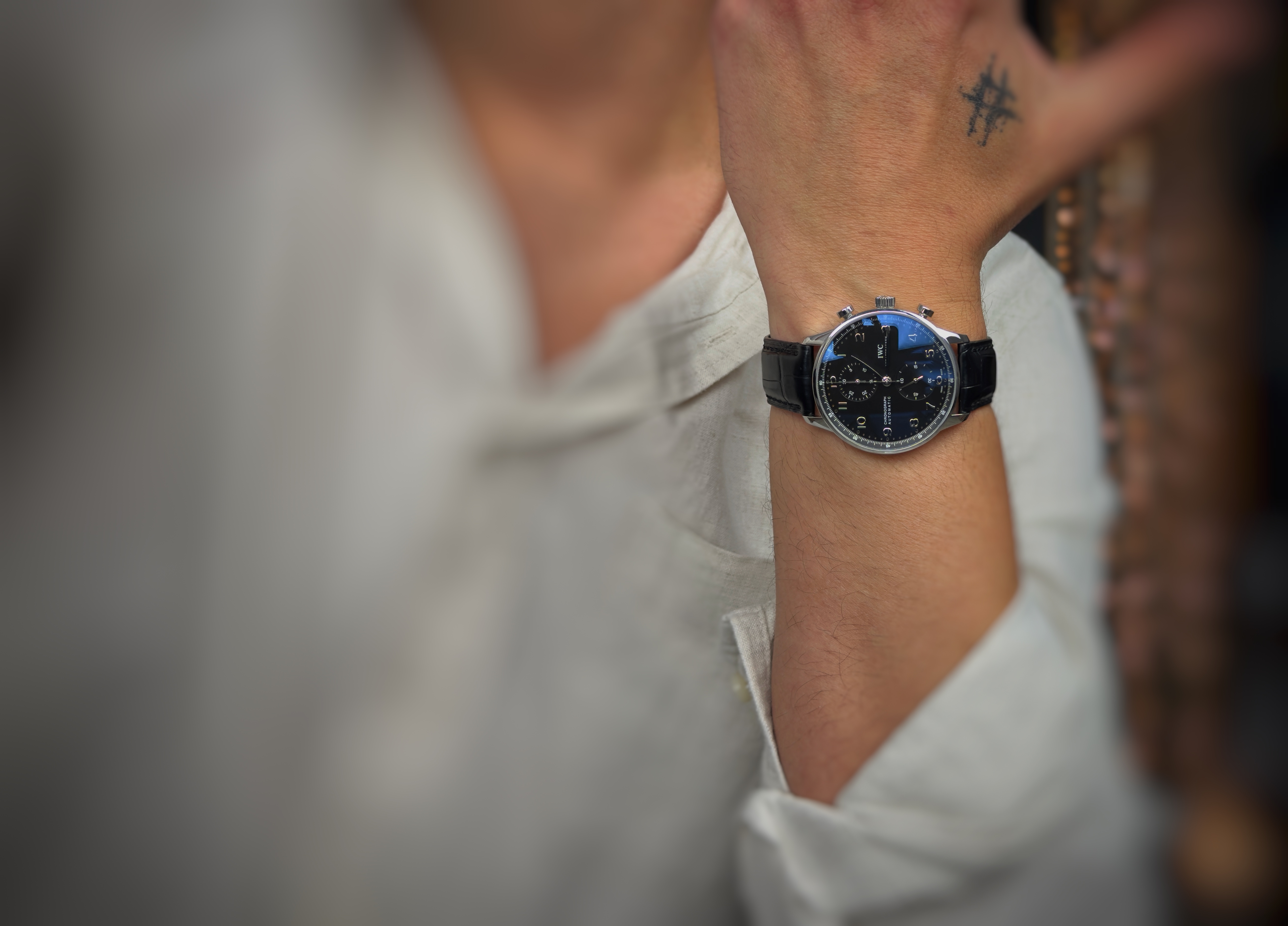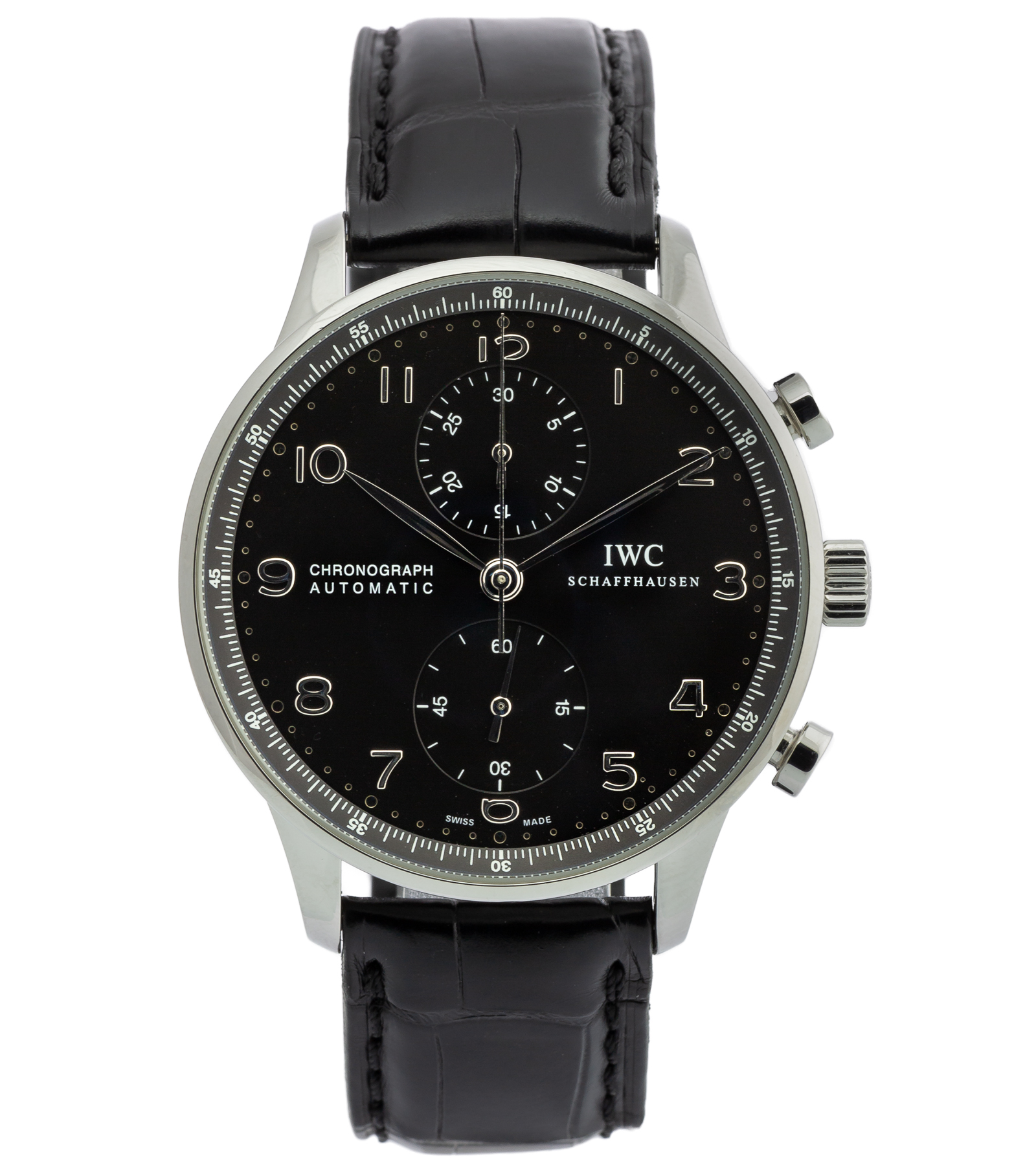 Oryginalny zegarek używany, zachowany w bardzo dobrym stanie. Model Portugieser Chronograph to jeden z najbardziej rozpoznawalnych i cenionych projektów manufaktury IWC Schaffhausen, będący ikoną klasycznej elegancji w świecie zegarków. Dany model wykonany jest ze stali z czarną tarczą z czytelnym układem chronografu, tworząc harmonijną i wyrafinowaną całość. To model idealny zarówno do formalnych stylizacji, jak i codziennego użytkowania w luksusowym wydaniu.