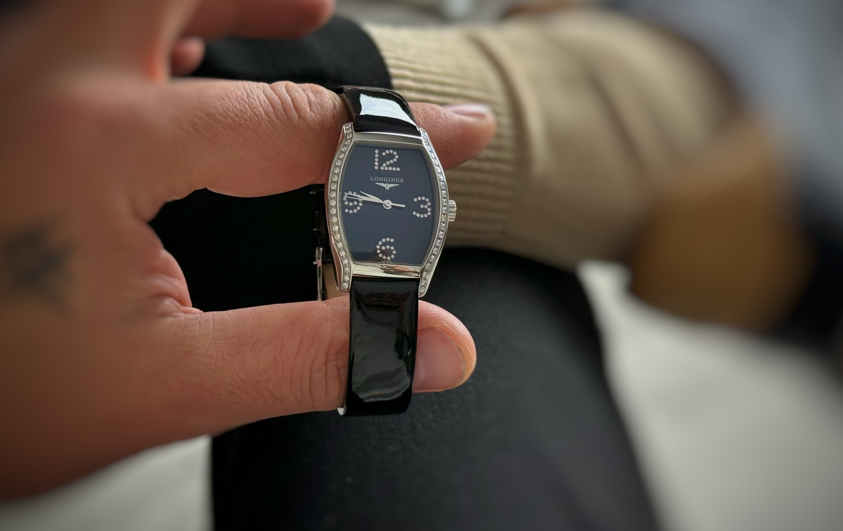 Oryginalny damski używany zegarek w bardzo dobrym stanie. Longines Evidenza, to przykład klasycznego zegarka w rzadko spotykanym kształcie tonneau (beczka) oraz diamentami. Dany model będzie pasował do szerokiej palety strojów. Na jego komplikacje składa się datownik. Oferowany model posiada oryginalne pudełko oraz komplet dokumentów. Numer referencyjny L2.155.0.57.2 Wodoszczelność określona przez producenta 30 metrów. Pierwsza sprzedaż 2021 rok