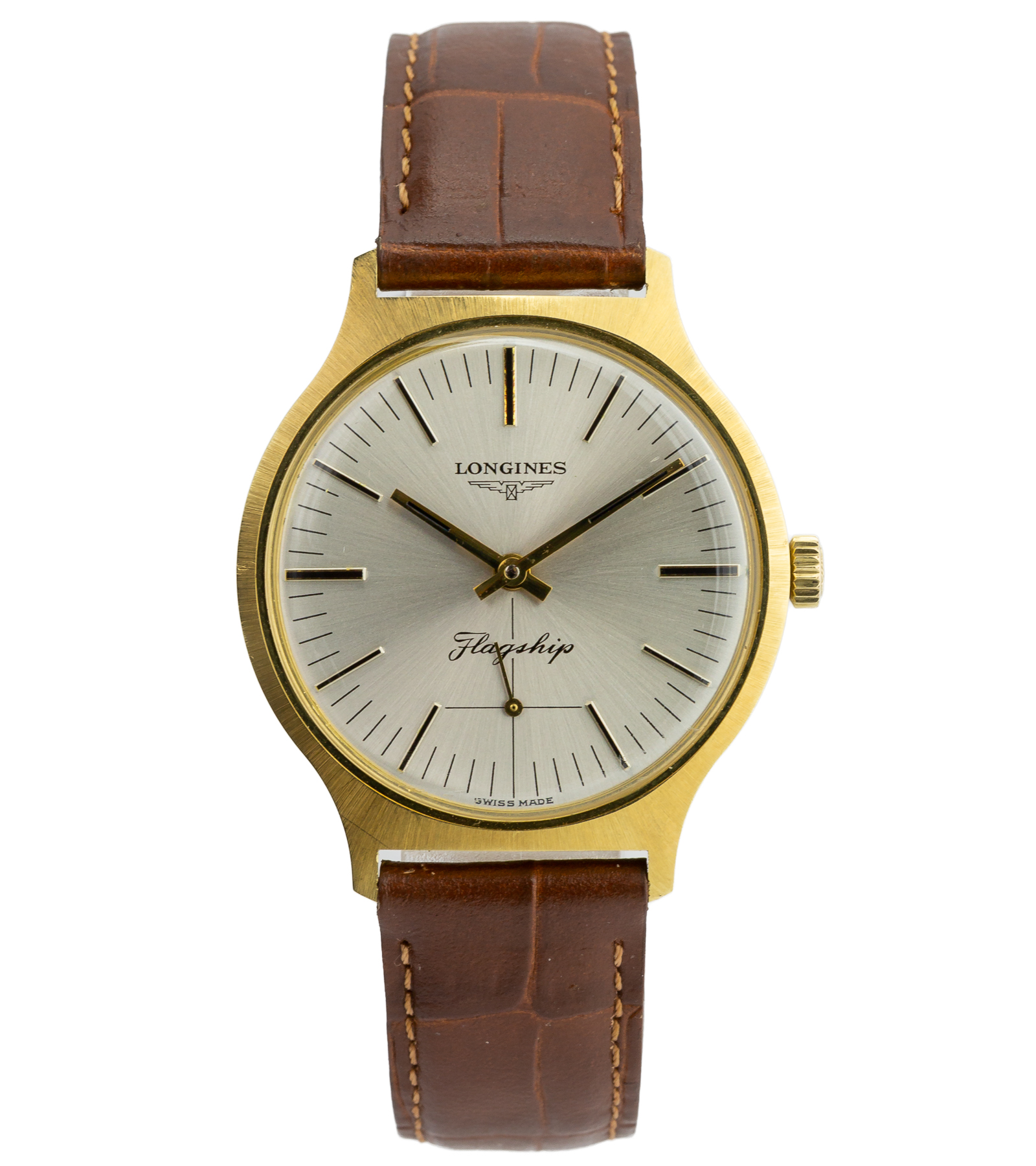 Oryginalny zegarek zegarek używany w bardzo dobrym stanie, niemal jak nowy! Longines Flagship to jedna z najbardziej klasycznych i rozpoznawalnych kolekcji manufaktury Longines. Linia ta od dziesięcioleci symbolizuje elegancję i ponadczasowy styl charakterystyczny dla szwajcarskiego zegarmistrzostwa. Dany model wykonany z 18-karatowego złota jest typowym przykładem luksusowego zegarka garniturowego z końca lat 80., łączącego minimalistyczną estetykę z wysoką jakością wykonania. Kolekcja Flagship była tworzona jako linia reprezentująca elegancję marki, a jej nazwa nawiązuje do okrętu flagowego – symbolu prestiżu i najwyższej jakości.
