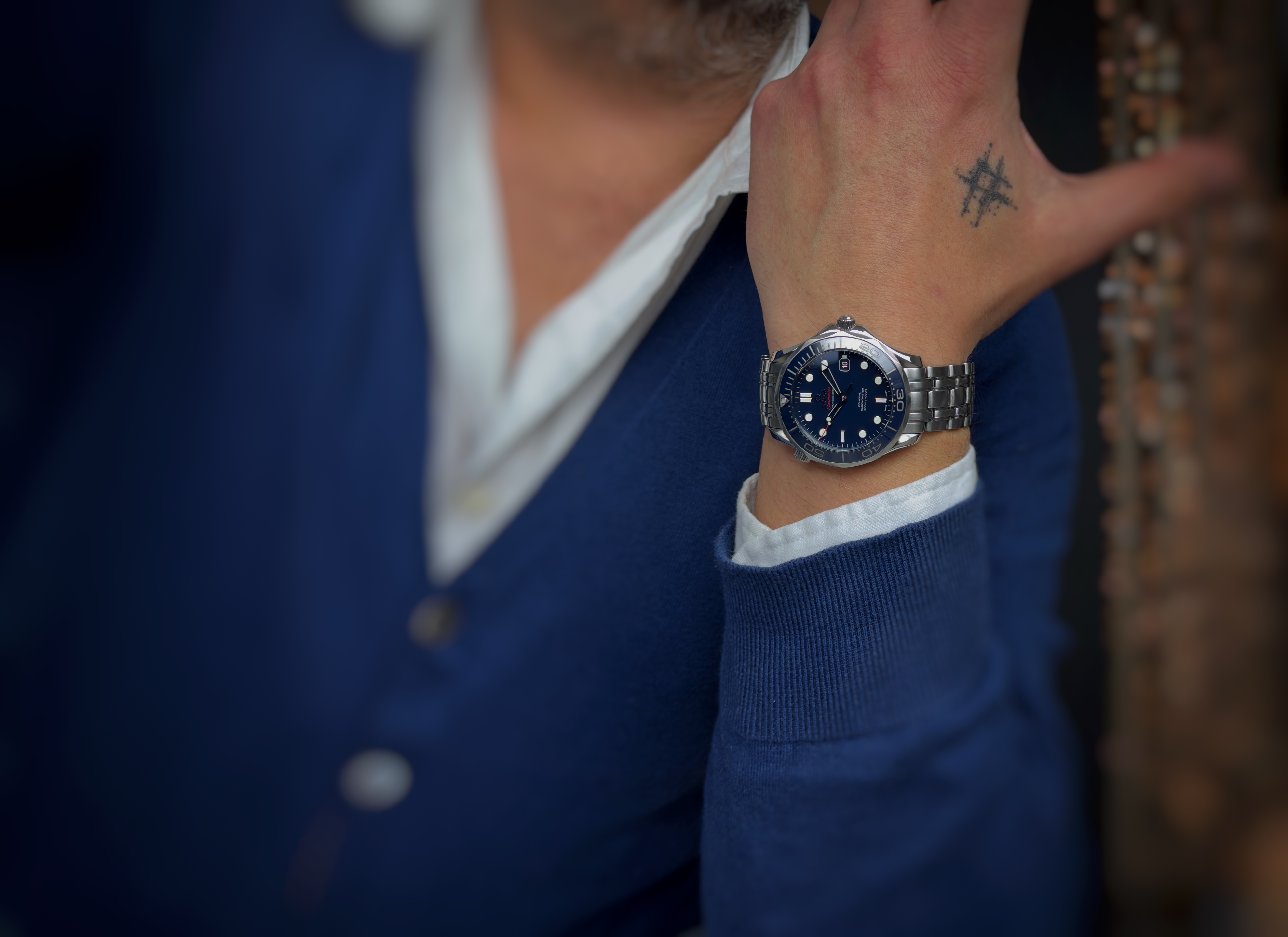 Oferowany zegarek jest oryginalny, używany, w bardzo dobrym stanie. Omega Seamaster Diver 300 M to jedna z najbardziej rozpoznawalnych ikon zegarków nurkowych XXI wieku. Model ten łączy profesjonalne parametry techniczne z elegancją, która pozwala nosić go zarówno na co dzień, jak i w bardziej formalnych sytuacjach. Charakterystyczna niebieska tarcza oraz ceramiczny bezel w tym samym odcieniu tworzą spójną, niezwykle atrakcyjną wizualnie kompozycję. To właśnie ten wariant Seamastera stał się symbolem sportowej elegancji i był wielokrotnie kojarzony z postacią Jamesa Bonda, wzmacniając kultowy status kolekcji.