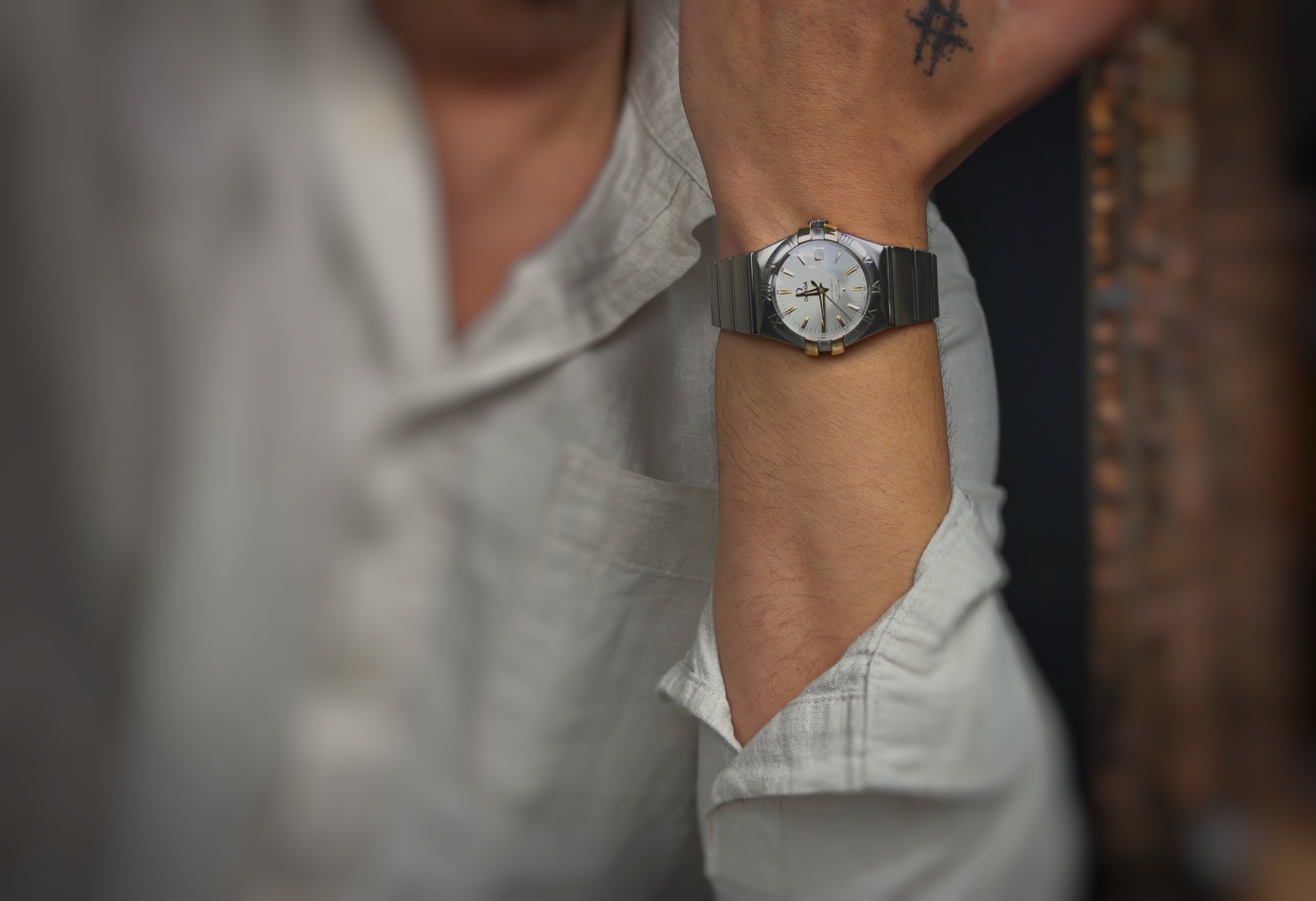 Oryginalny zegarek używany, zachowany w bardzo dobrym stanie. Model Omega Constellation to jedna z najbardziej rozpoznawalnych linii manufaktury Omega, będąca symbolem precyzji, elegancji oraz ponadczasowego wzornictwa. W prezentowanej wersji zegarek wyróżnia się charakterystyczną kopertą wykonaną z żółtego złota z czterema „pazurami” (griffes), które stanowią znak rozpoznawczy kolekcji, oraz subtelną, srebrną tarczą ozdobioną szlifem słonecznym i rzymskimi indeksami na lunecie z 18-karatowego złota. Dwukolorowa konstrukcja (stal szlachetna oraz złoto) nadaje całości luksusowego, a zarazem uniwersalnego charakteru – zegarek doskonale sprawdzi się zarówno w stylizacjach formalnych, jak i codziennych. Zintegrowana bransoleta podkreśla spójność projektu oraz komfort noszenia.