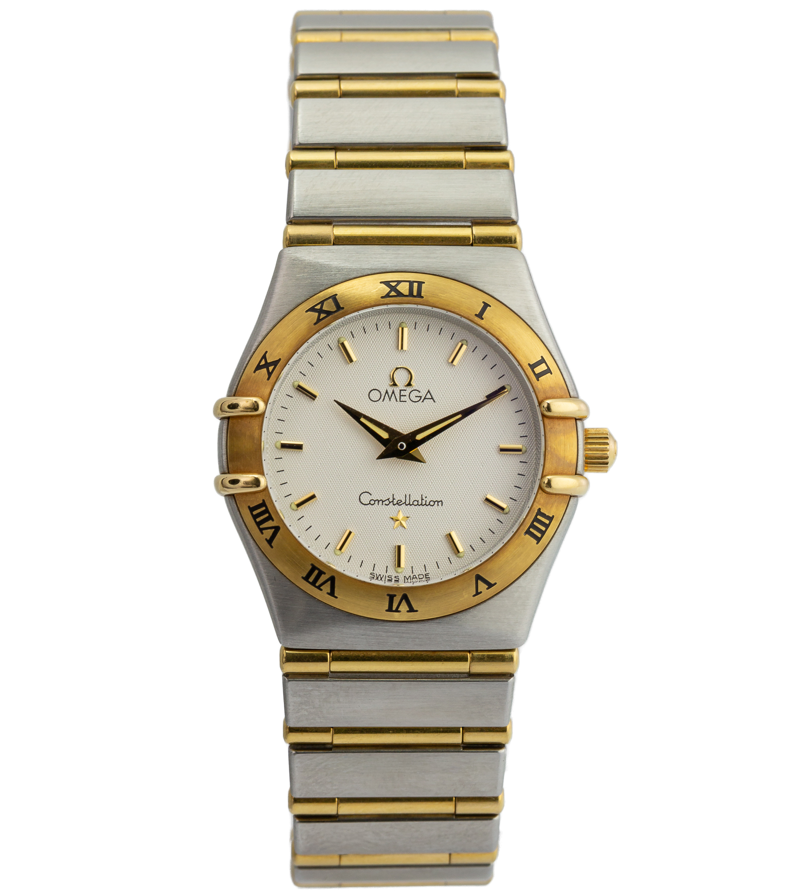Oryginalny zegarek używany, zachowany w bardzo dobrym stanie. Omega Constellation w wersji 25 mm to elegancki, biżuteryjny model damski, który od lat stanowi symbol ponadczasowego stylu i precyzji manufaktury Omega. Charakterystyczna koperta z czterema „pazurami” (griffes) oraz złota luneta z rzymskimi indeksami tworzą rozpoznawalny design, będący ikoną kolekcji Constellation.