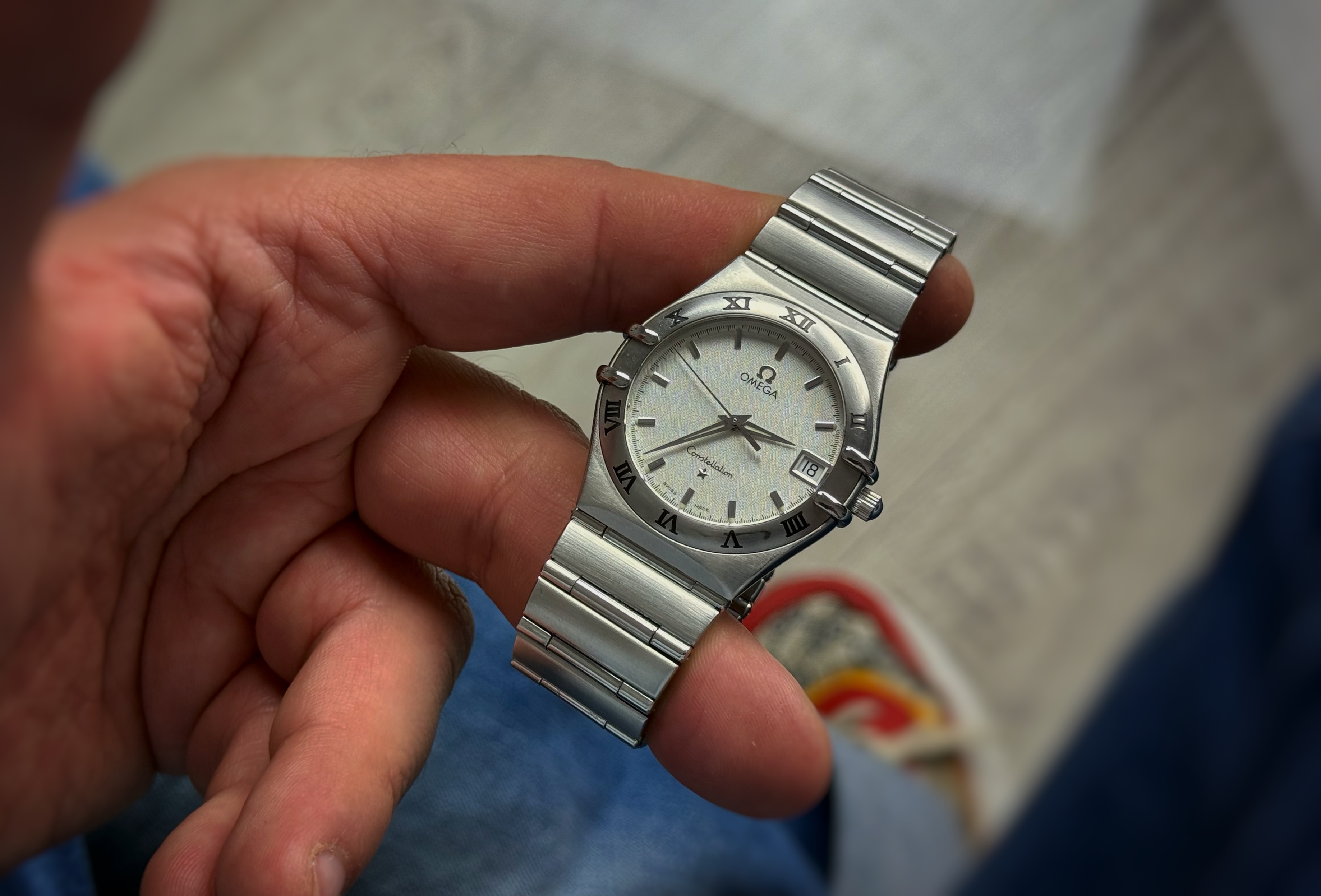 Oryginalny zegarek używany, stan bardzo dobry. Zegarek Omega Constellation to klasyczna propozycja z jednej z najbardziej rozpoznawalnych linii marki Omega — Constellation. Model łączy elegancki, ponadczasowy design z codzienną funkcjonalnością, oferując lekki, precyzyjny i niezawodny mechanizm kwarcowy w kompaktowej kopercie o średnicy 33,5 mm – idealny zarówno dla miłośników klasyki, jak i codziennego stylu. Wodoszczelność określona przez producenta 50 metrów. Numer referencyjny 1512.30.00 Na funkcję składa się datownik. W zestawie oryginalne pudełko firmy Omega (pudełko serwisowe). Pierwsza sprzedaż nastąpiła w 2000 roku.