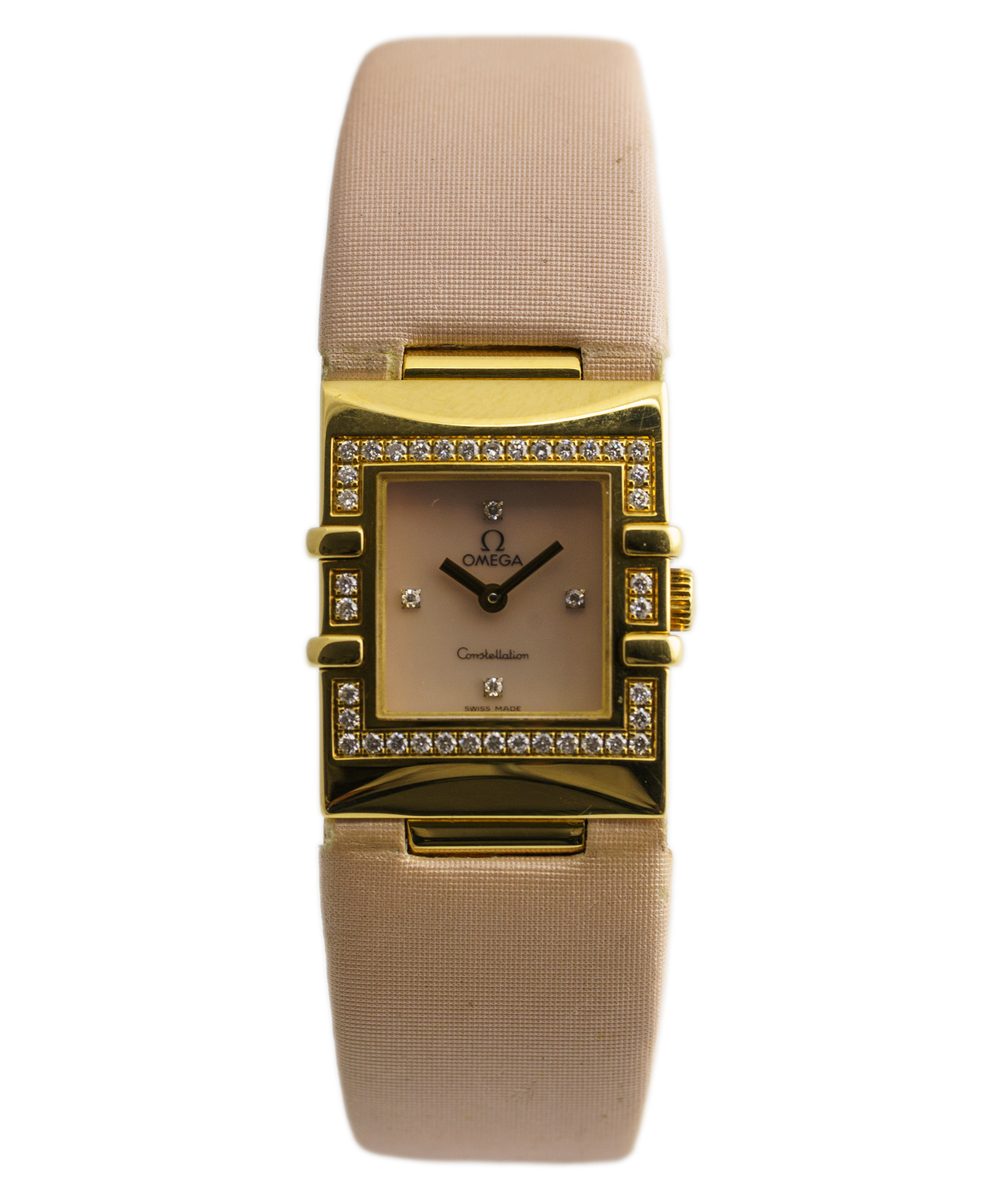 Oryginalny damski – stan bardzo dobry chociaż posiada już ponad 20 lat! Klasyczny, elegancki i ponadczasowy. Wykonany z żółtego złota, tarcza z masy perłowej oraz diamentami. W zestawie oryginalne pudełko firmy Omega. Numer referencyjny 1635.73.63 Wodoszczelność określona przez producenta 30 metrów. Pierwsza sprzedaż w 2005 roku.