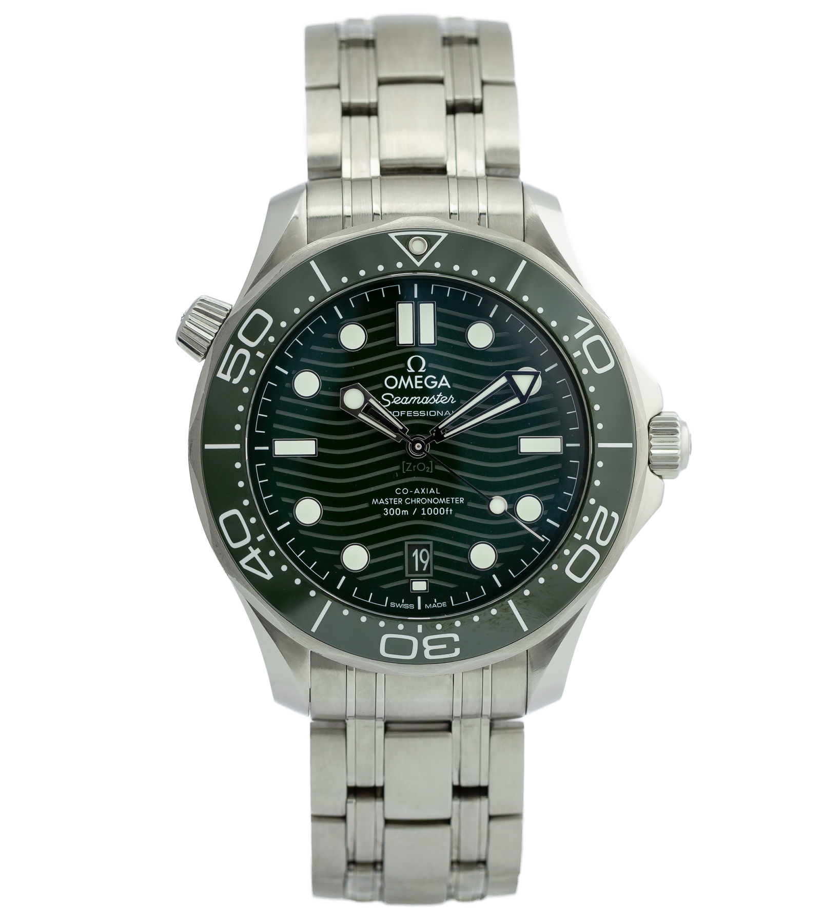 Oryginalny zegarek używamy – stan bardzo dobry, mikro ślady użytkowania. Zegarek wykonany ze stali szlachetnej, polerowanej i satynowanej, tarcza i bezel w wersji zielonej. Numer referencyjny 210.30.42.20.10.001 . Na jego komplikacje składa się datownik. Wodoszczelność określona przez producenta 300 metrów. W zestawie oryginalne pudełko oraz komplet dokumentów. Pierwsza sprzedaż w 2022 roku (gwarancja producenta ważna do 2027 roku)