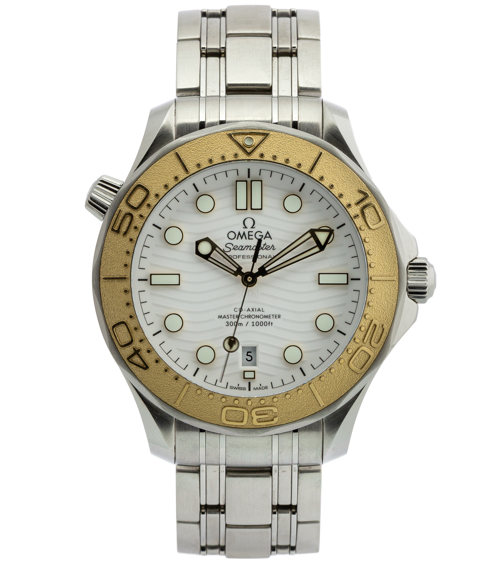 Oryginalny używany zegarek marki Omega z prestiżowej kolekcji Seamaster Diver 300M, przygotowany jako edycja związana z wydarzeniem Paris 2024 Olympic Games. Model ten stanowi wyjątkowe połączenie sportowego charakteru profesjonalnego divera z luksusowym wykończeniem w autorskim złocie Moonshine™.