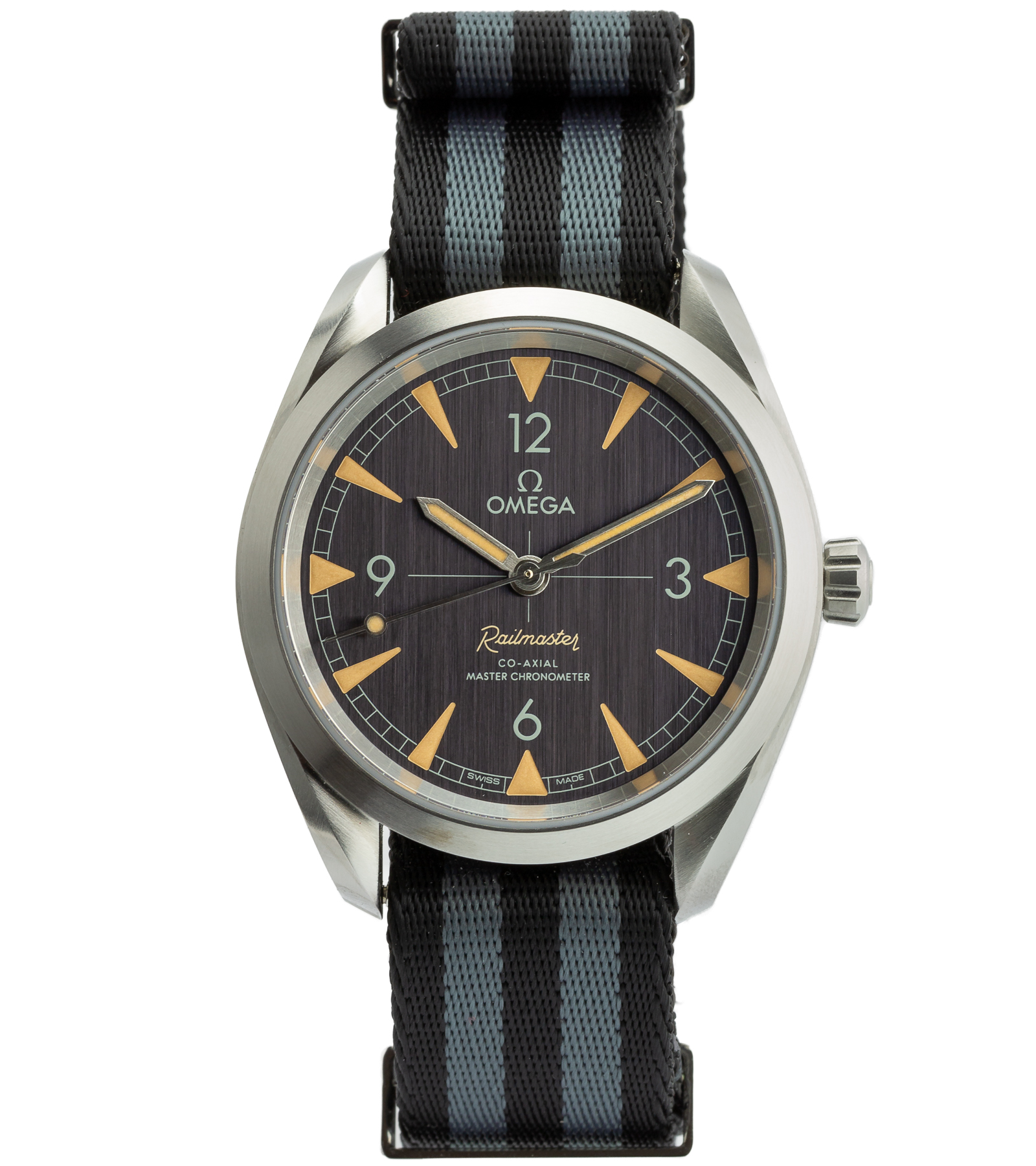 Oryginalny zegarek marki Omega z kolekcji Seamaster Railmaster – modelu inspirowanego legendarnymi zegarkami technicznymi z lat 50., stworzonymi dla inżynierów i specjalistów pracujących w środowiskach o silnym polu magnetycznym. Dany model to nowoczesna reinterpretacja tego kultowego modelu, łącząca minimalistyczny design z zaawansowaną technologią antymagnetyczną.