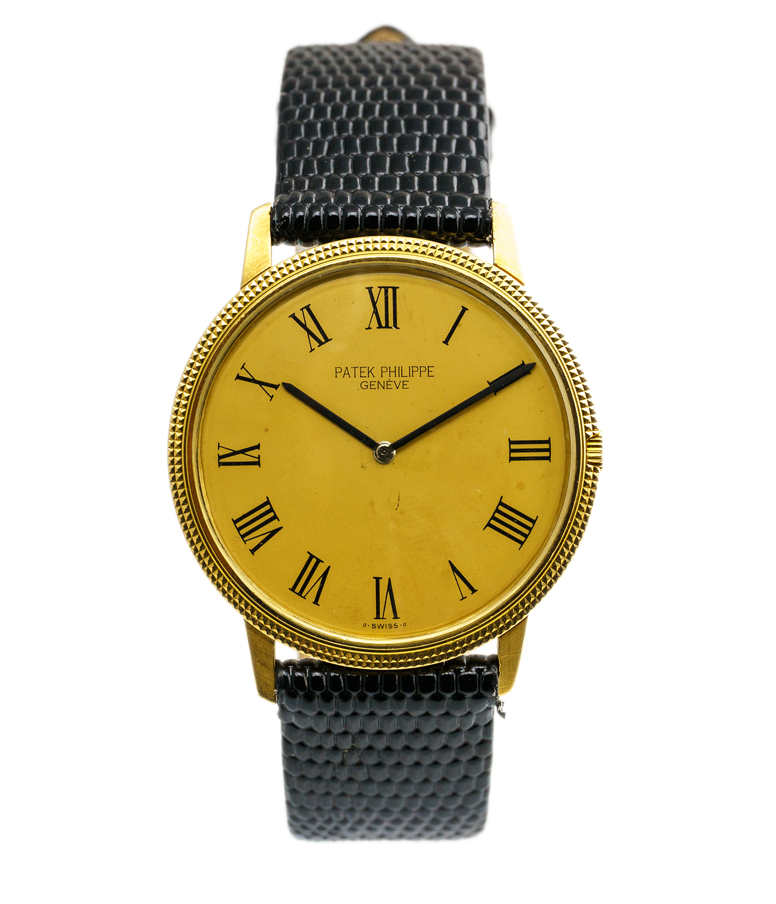 Oryginalny zegarek używany zachowany w bardzo dobrym stanie! Bardzo elegancki, unikatowy i niepowtarzalny! Jest to  „biały kruk” nie tylko dlatego że został wycofany z produkcji, ale także ponieważ jest to zegarek wykonany z 18-karatowego żółtego złota. Numer referencyjny 3590  Zegarek posiada oryginalne pudełko (etui Patek Philippe) Pierwsza sprzedaż około 1990 rok.