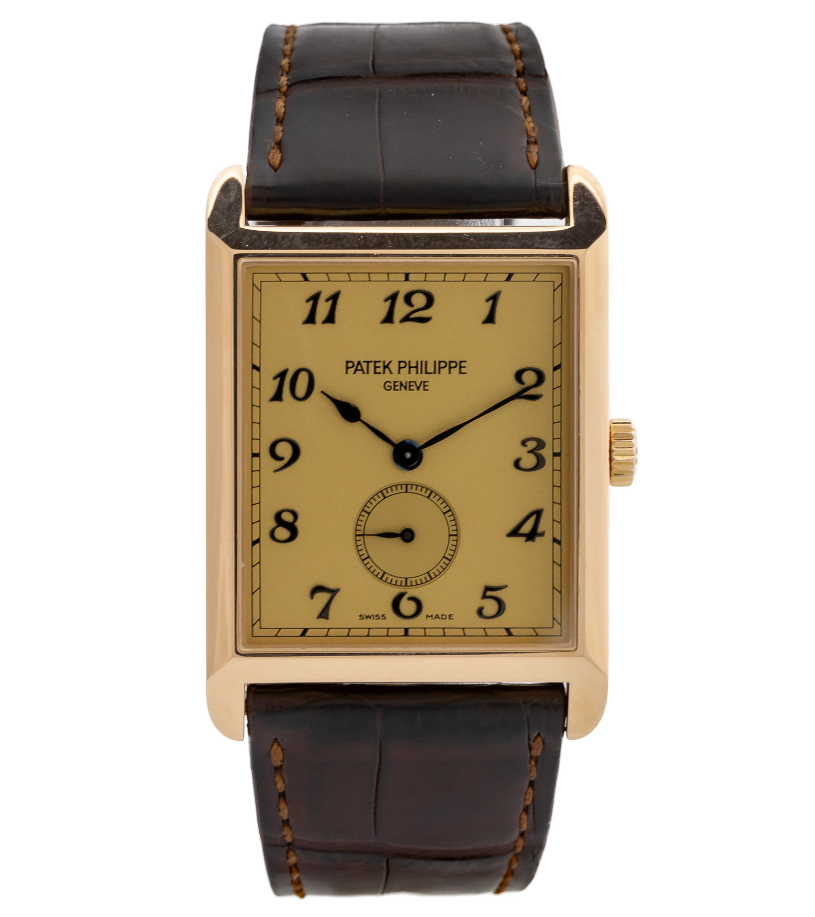 Oryginalny zegarek używany zachowany w bardzo dobrym stanie. Wyjątkowy model z kolekcji Gondolo, inspirowanej estetyką Art Déco, stanowi esencję klasycznej elegancji i tradycyjnego zegarmistrzostwa haute horlogerie. Koperta została wykonana z różowego złota, a jej smukła, beczułkowata forma (tonneau) nadaje zegarkowi wyrafinowany i ponadczasowy charakter. Numer referencyjny 5109R-001 Zegarek posiada oryginalne pudełko. Pierwsza sprzedaż w okolicy 1990 roku.