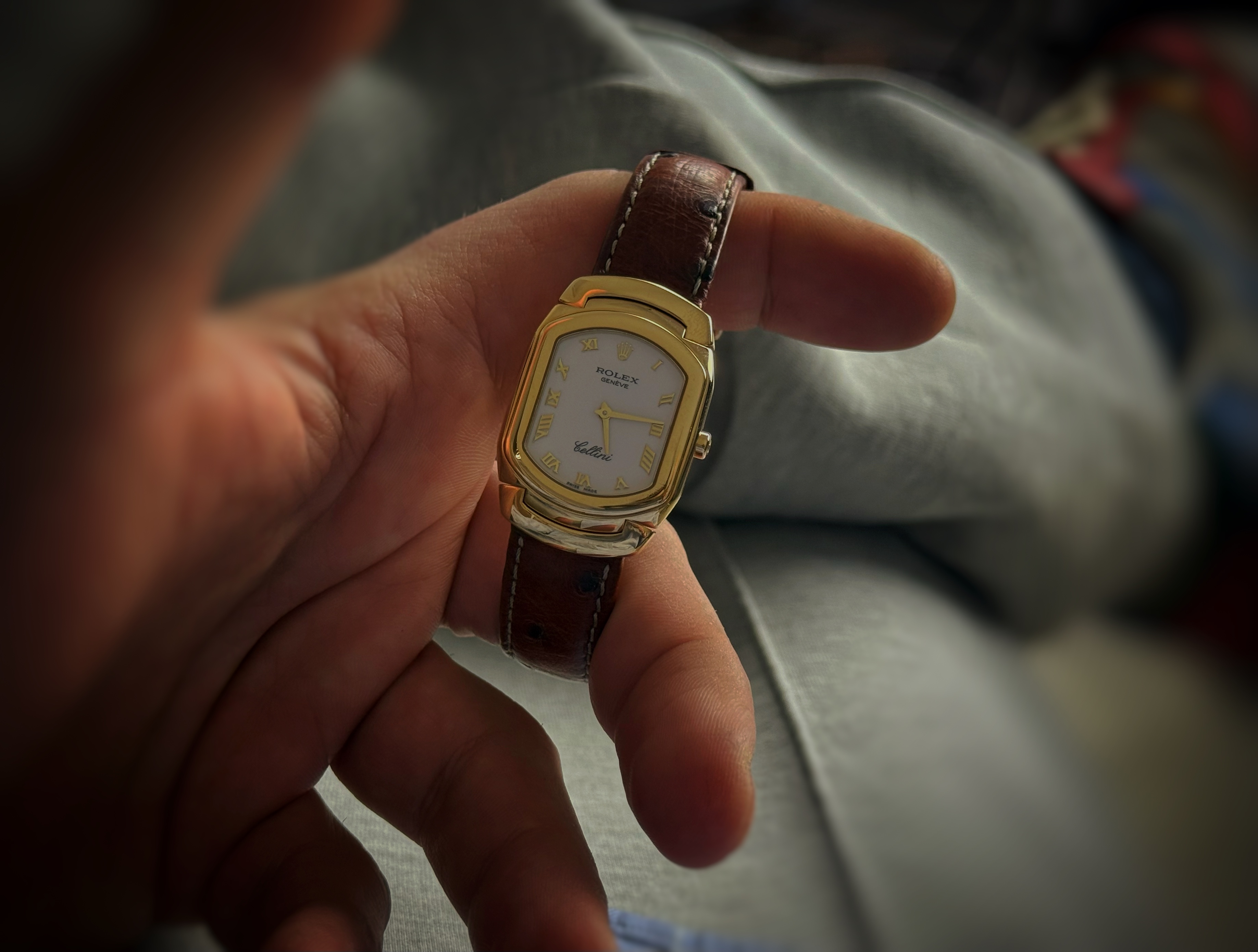 Oryginalny używany damski zegarek, stan bardzo dobry. Rolex Cellini to klasyczny zegarek garniturowy, stanowiący esencję elegancji i zegarmistrzowskiej tradycji marki Rolex. Model ten został zaprojektowany z myślą o formalnym stylu i ponadczasowych proporcjach, będąc przeciwieństwem sportowych konstrukcji Oyster. Minimalistyczna tarcza, smukła koperta oraz subtelne detale tworzą harmonijną kompozycję, idealną do eleganckich stylizacji Numer referencyjny 6631 Oferowany zegarek posiada oryginalne pudełko Rolex-a Pierwsza sprzedaż okolice 1990 roku.