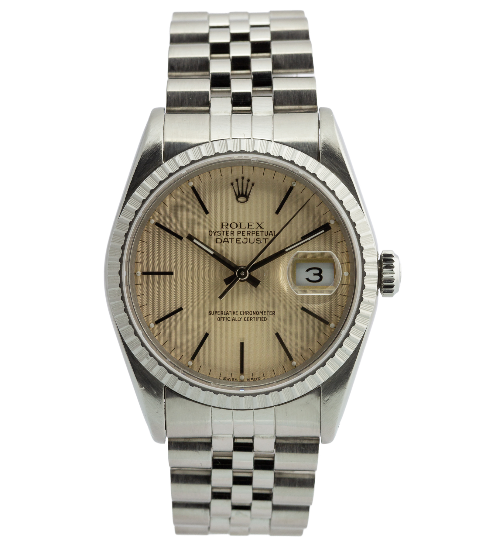 Oryginalny używany zegarek, stan bardzo dobry niemal idealny a posiada ponad 25 lat! To ponadczasowy model, który doskonale łączy sportową elegancję z prestiżem szwajcarskiego zegarmistrzostwa. Wersja z unikalną tarczą Silver Tapestry oraz bransoletą Jubilee stanowi dziś wyjątkowo poszukiwany wariant kolekcjonerski z początku lat 90. Numer referencyjny 16220. Na jego funkcję składa się datownik. Pierwsza sprzedaż w 1991 roku. Oferowany zegarek posiada oryginalne etui firmy Rolex-a.