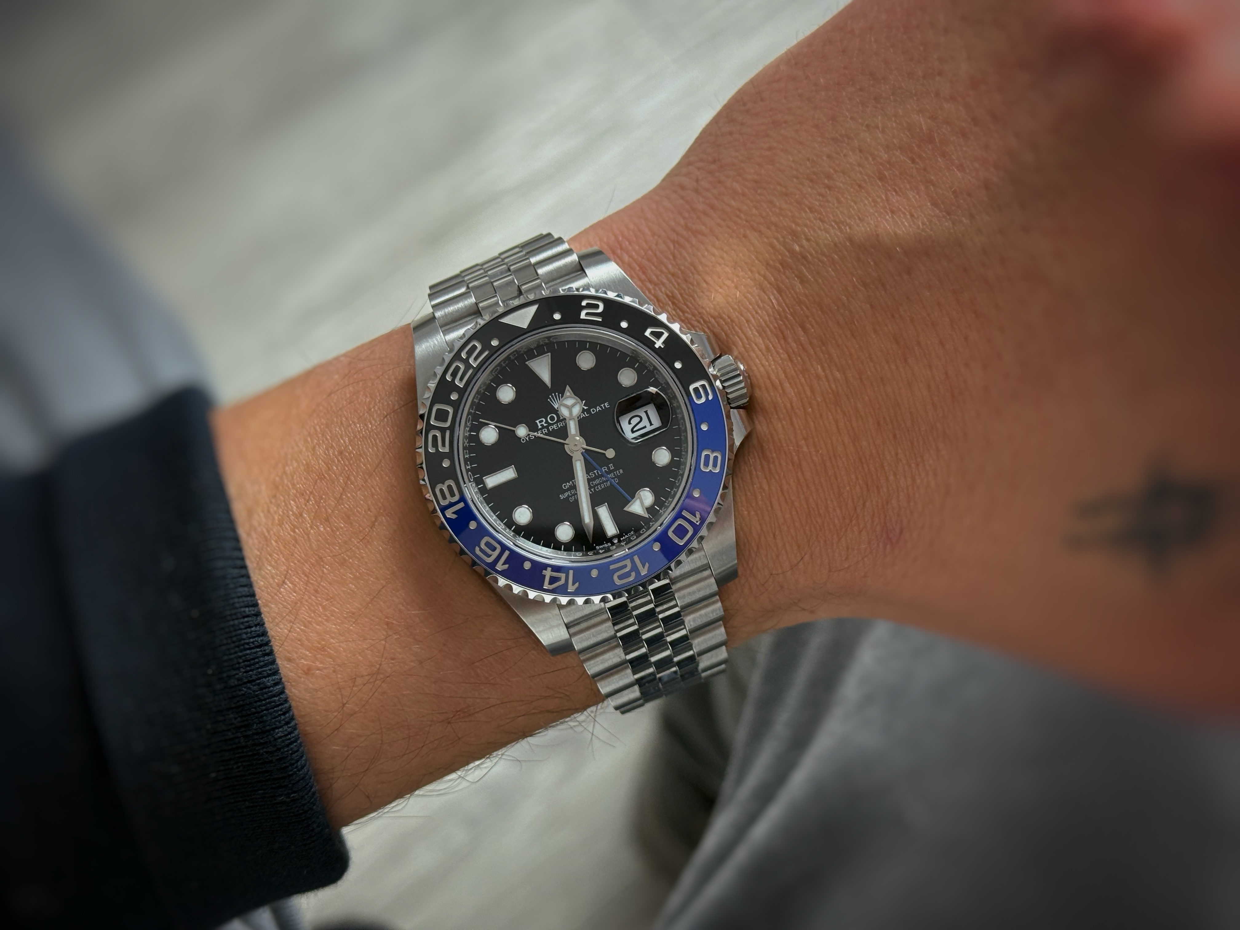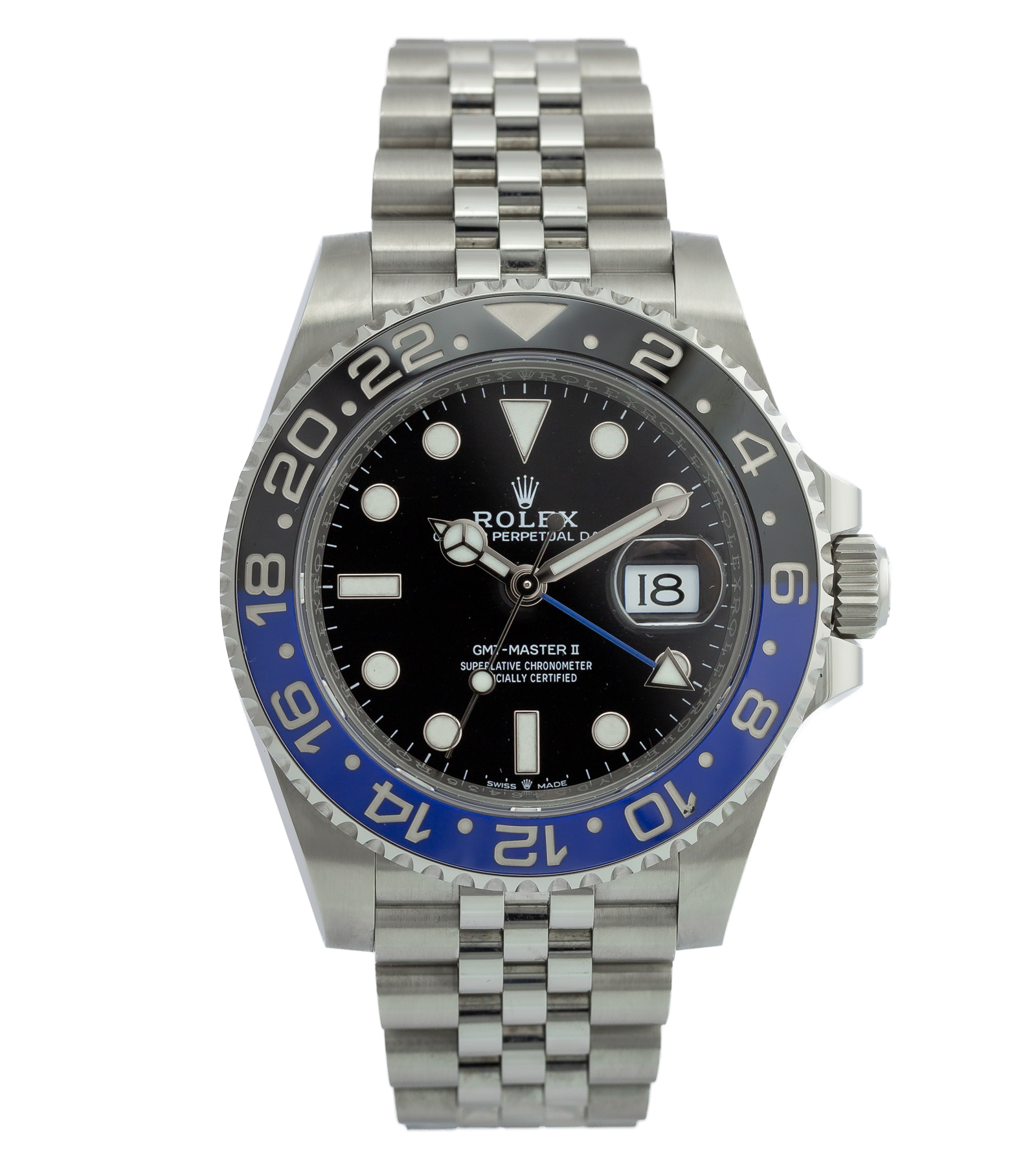 Oryginalny zegarek firmy Rolex, model zwany „Batman”, charakteryzuje się czarno-niebieską lunetą. To już druga generacja serii GMT, a jej głównym rozpoznawczym elementem jest ceramiczny pierścień, odporny na wszelkie rysy i zadrapania. Numer referencyjny 126710BLNR. Na jego komplikacje składa się data oraz GMT. Pierwsza sprzedaż nastąpiła w lipcu 2025 roku w polskim salonie. Gwarancja producenta ważna do 2030 roku. Oferowany zegarek posiada oryginalne pudełko Rolex oraz komplet dokumentów.