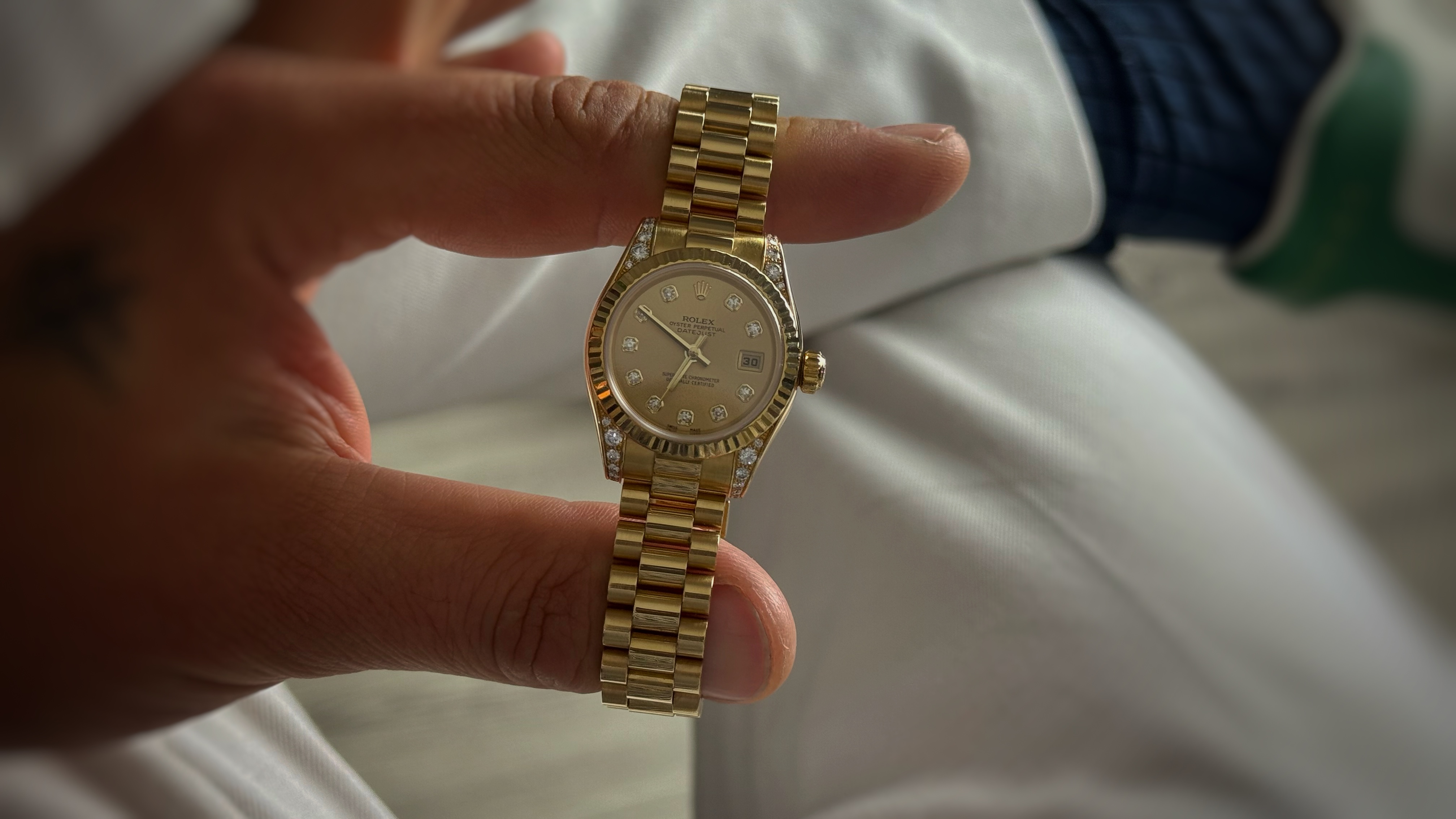 Oryginalny używany damski zegarek, stan bardzo dobry. Wyprofilowana, wypolerowana koperta Oyster oraz bransoleta President. Bardzo rzadko spotykany model w takim secie. Producent określił wodoszczelność do 100 metrów.