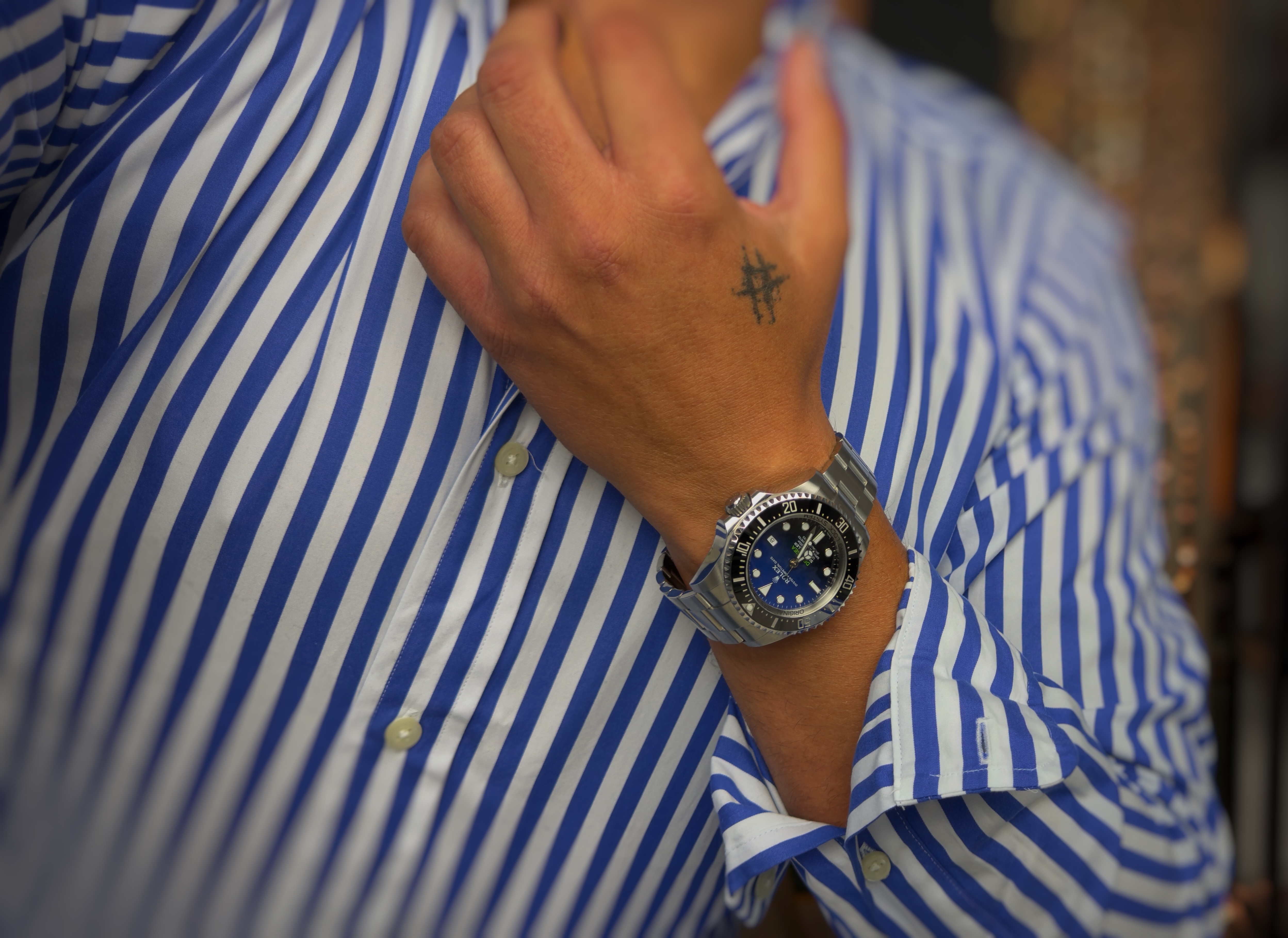 Oryginalny zegarek używany,  jednakże stan jak nowy! Legendarny Diver w kopercie 44 mm, niebieska tarcza James Cameron  Numer referencyjny 126660 Na jego komplikacje składa się data. Pierwsza sprzedaż nastąpiła w 2021 roku w polskim salonie. Oferowany zegarek posiada oryginalne pudełko Rolex oraz komplet dokumentów.