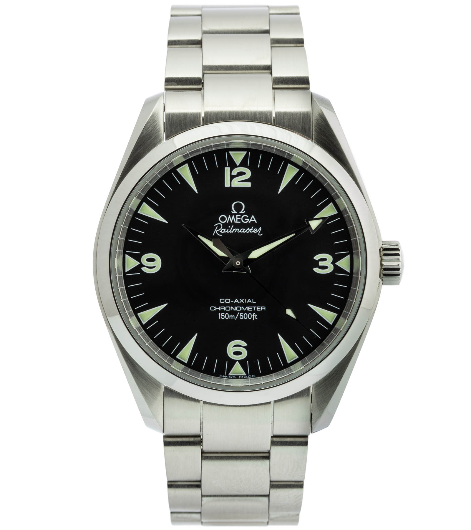 Oryginalny używany zegarek marki Omega z kolekcji Seamaster Railmaster – linii inspirowanej modelami technicznymi z lat 50., tworzonymi z myślą o inżynierach, naukowcach oraz osobach pracujących w środowiskach o wysokim natężeniu pól magnetycznych. Railmaster to jeden z najbardziej niedocenianych, a jednocześnie najbardziej „czystych” projektów Omegi – minimalistyczny, funkcjonalny i niezwykle czytelny.