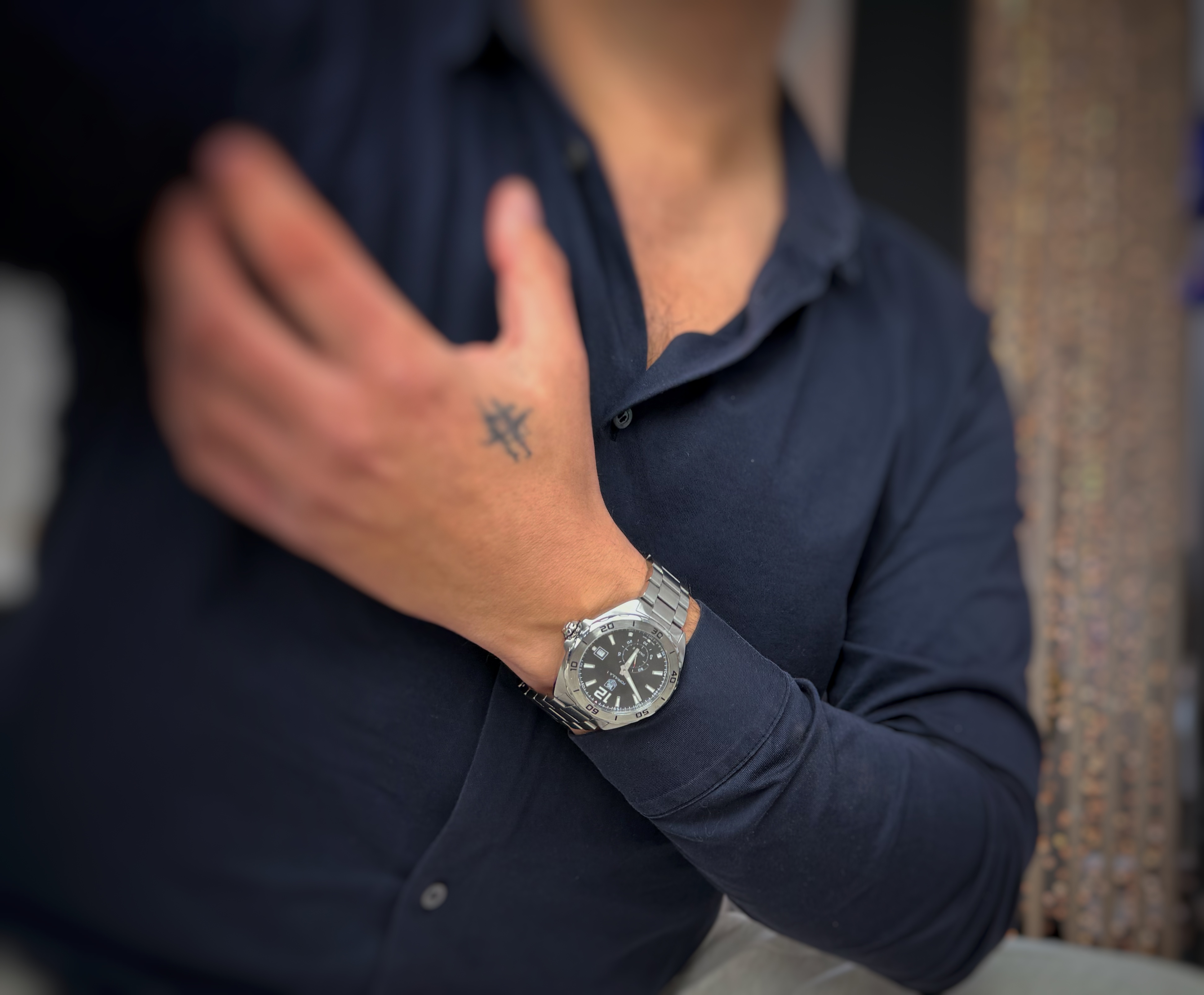 Oryginalny zegarek, używany stan bardzo dobry. Na jego funkcję składa się datownik. Producent określił wodoszczelność do 200 metrów. Numer referencyjny WAZ2110.BA0875 Oferowany zegarek posiada oryginalne pudełko firmy TAG Heuer oraz komplet dokumentów. Pierwsza sprzedaż w 2015 roku.